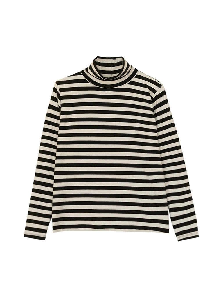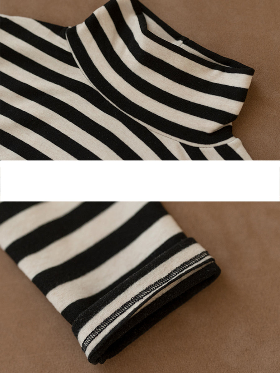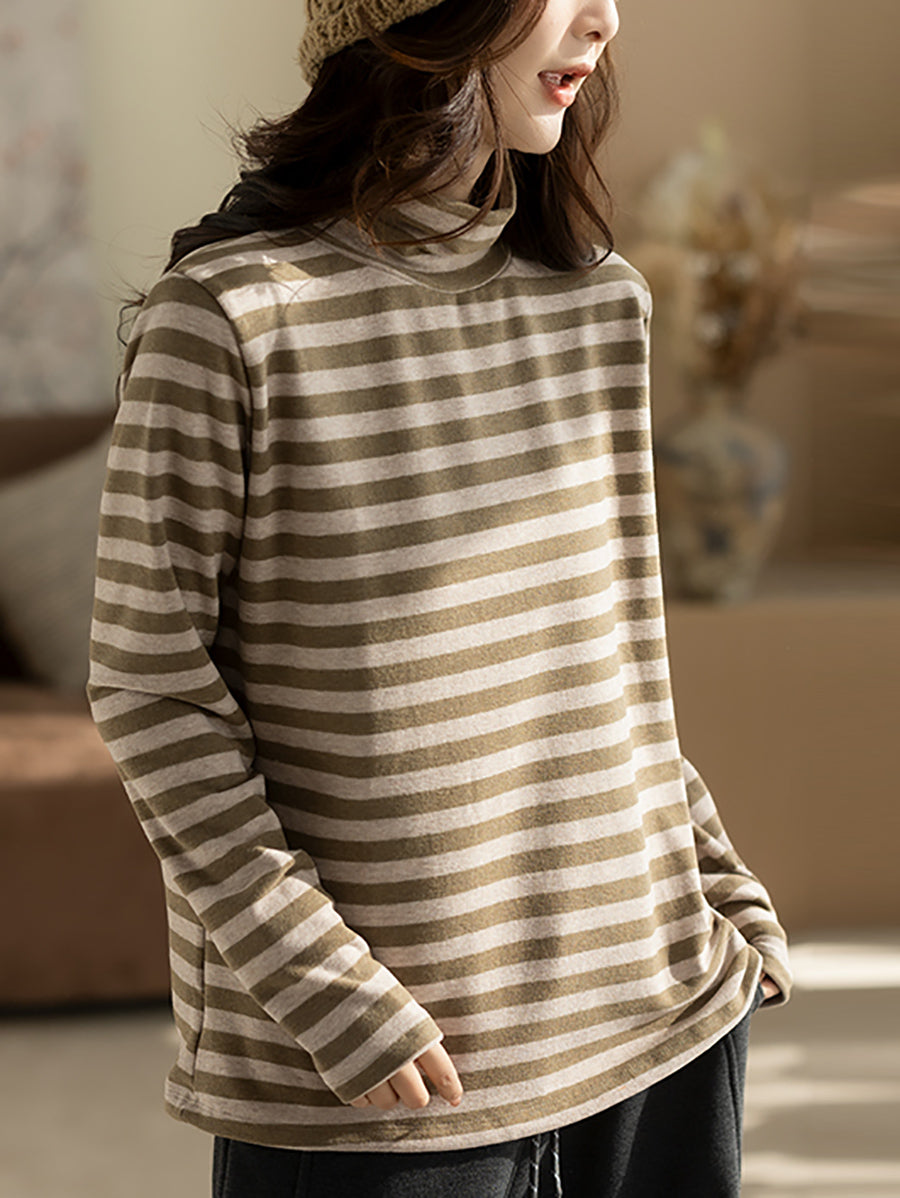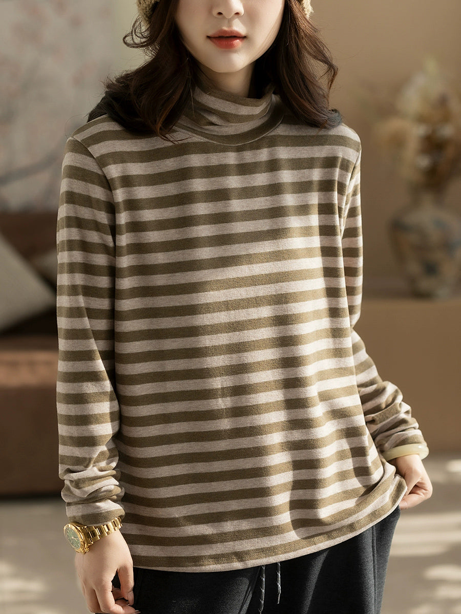 Blusa vintage de cuello alto a rayas de otoño para mujer