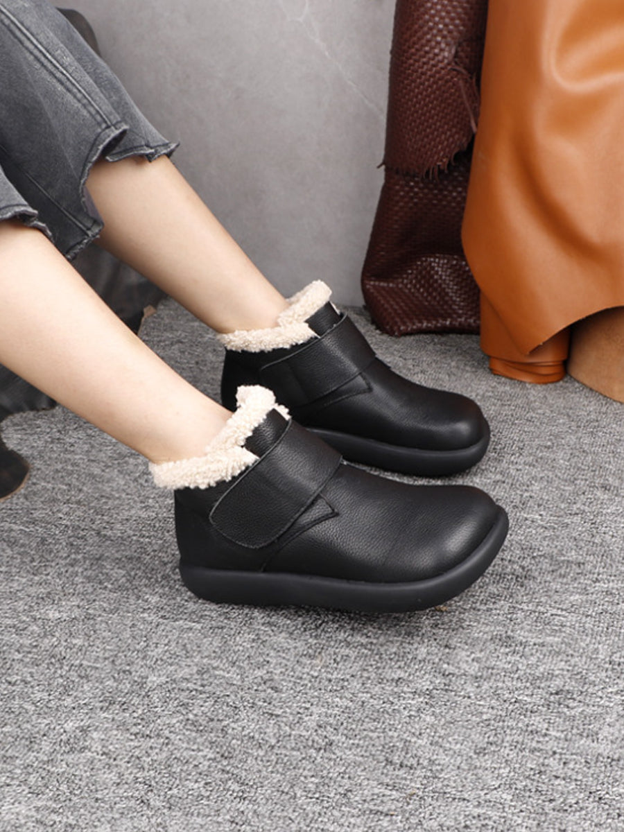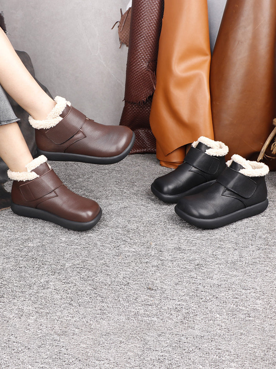 Botas casuales vintage de piel auténtica con forro polar para mujer