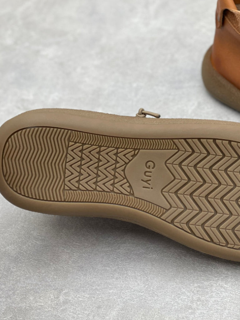 Botines planos vintage de piel auténtica con empalmes para mujer