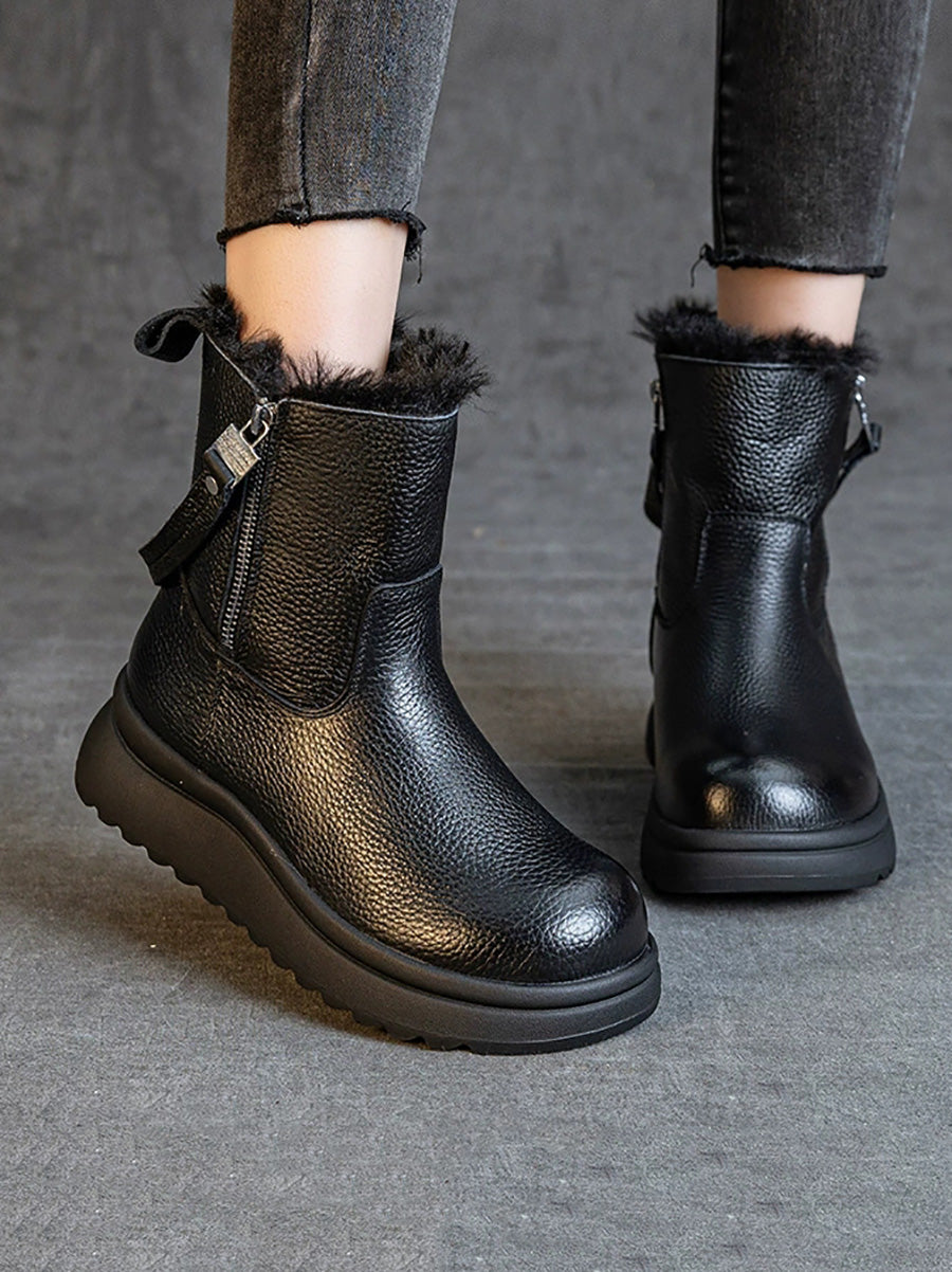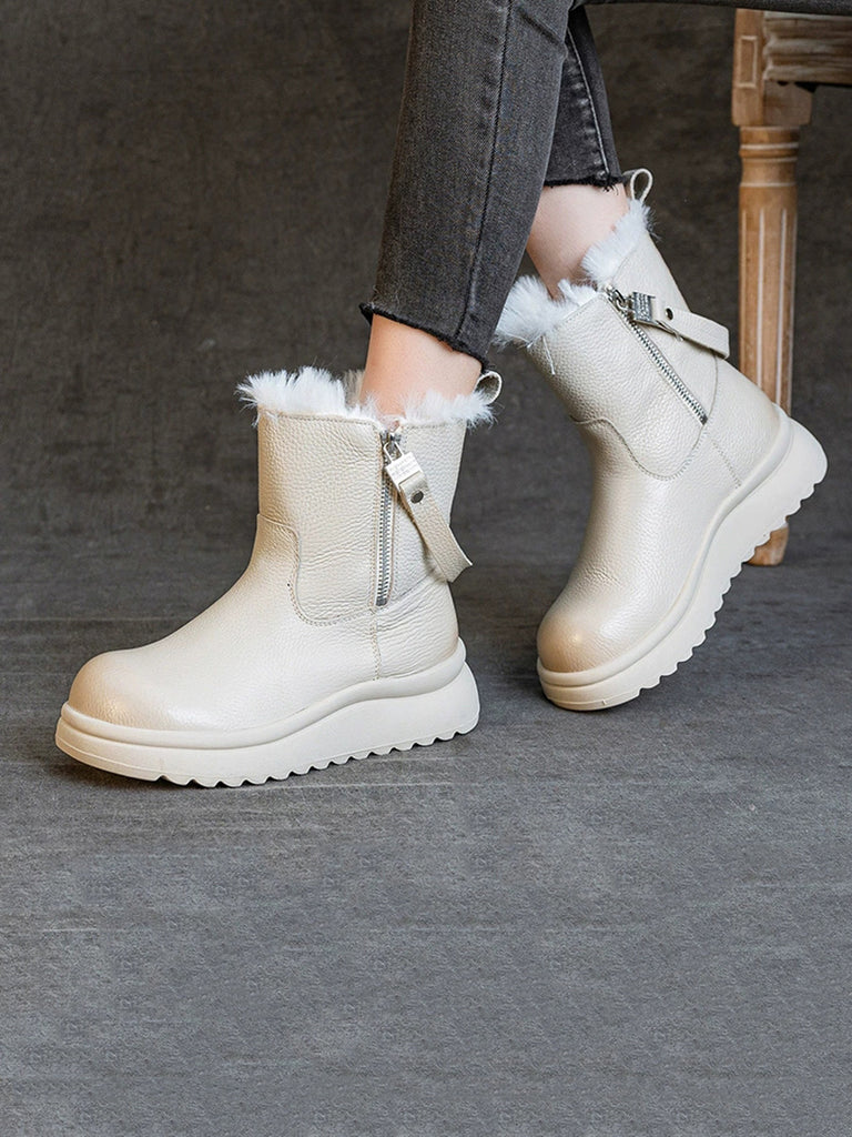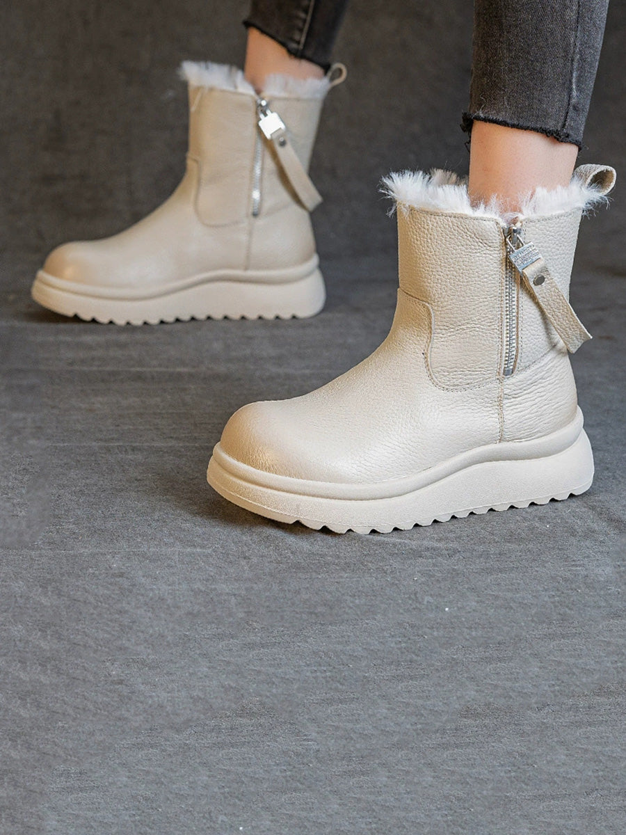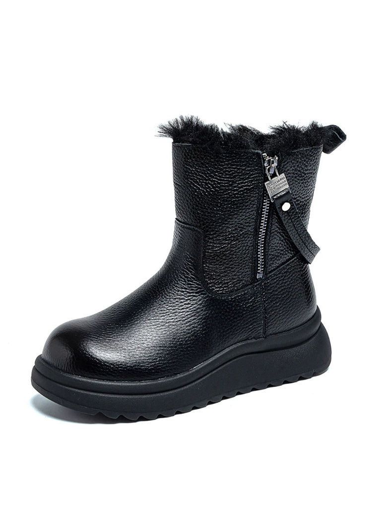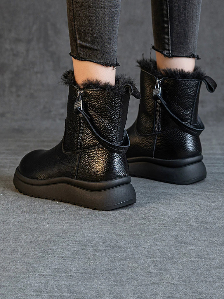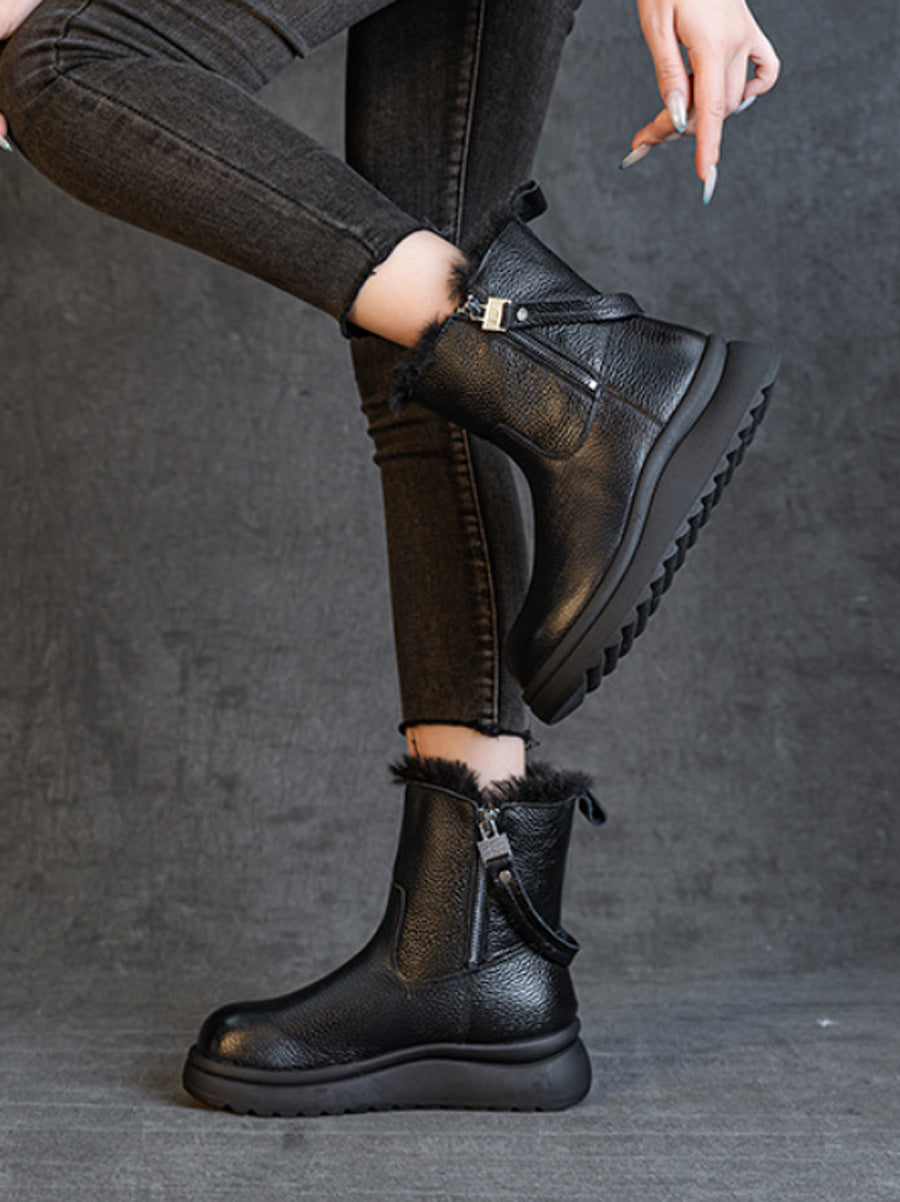 Botas de invierno para mujer de piel auténtica con forro polar