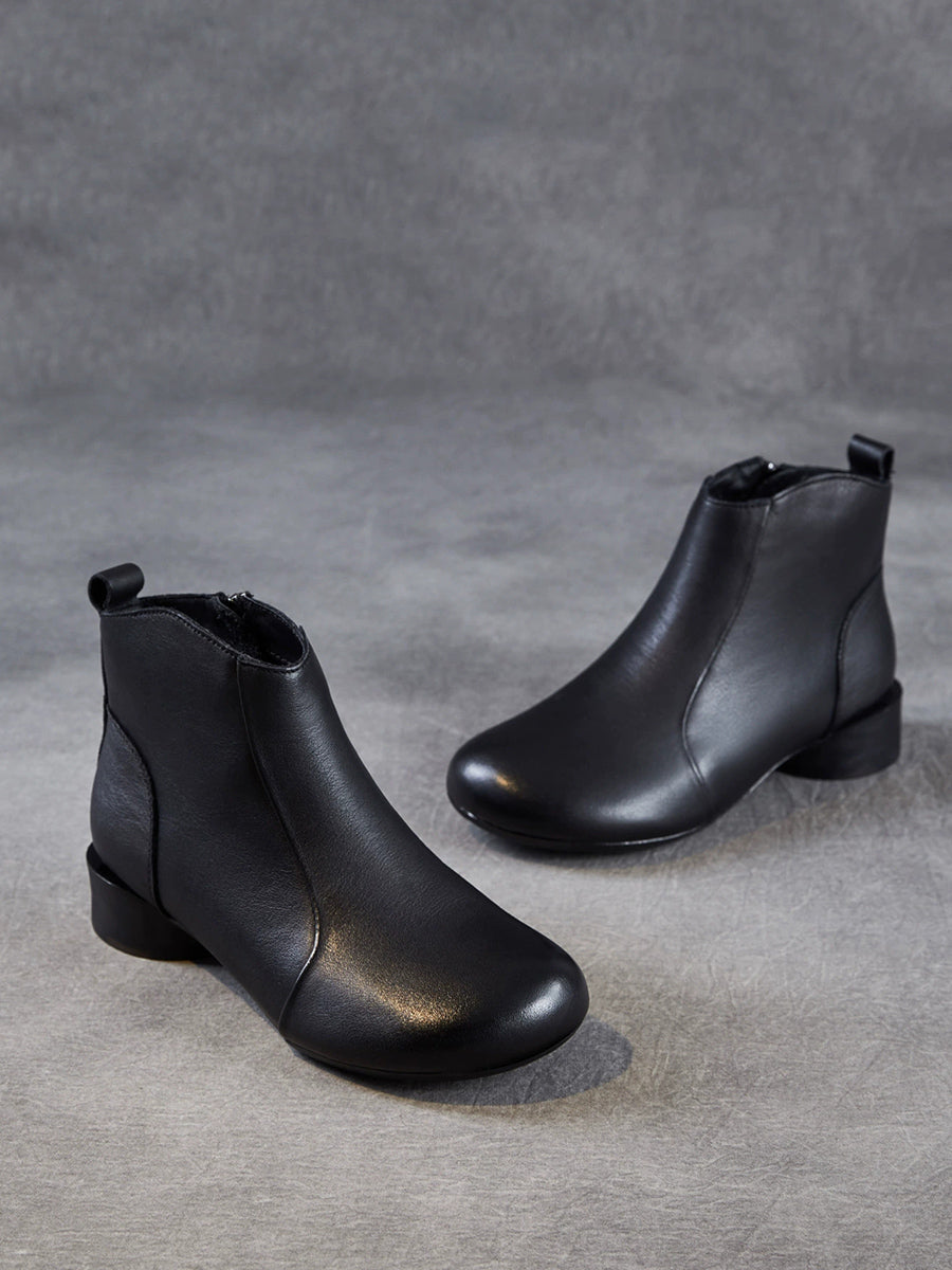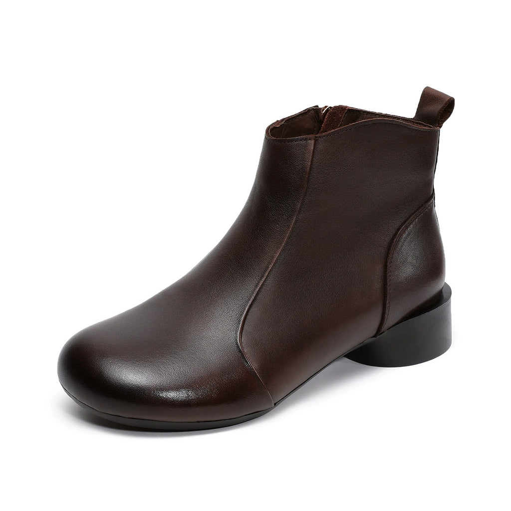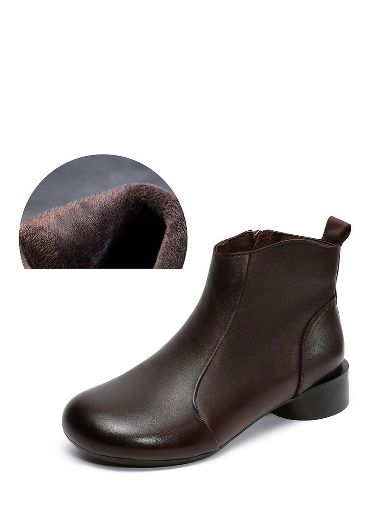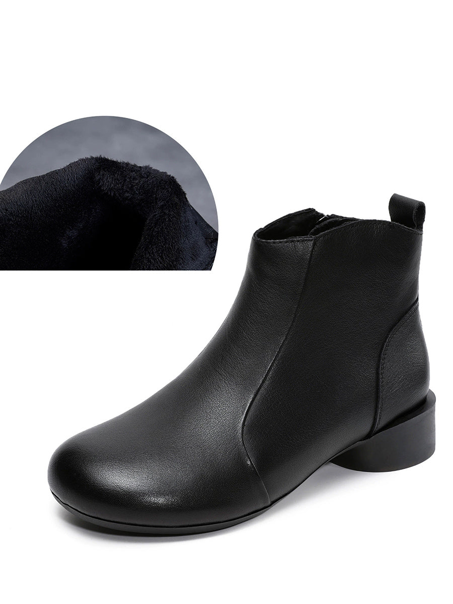 Botines de invierno para mujer, de piel auténtica, con tacón bajo.