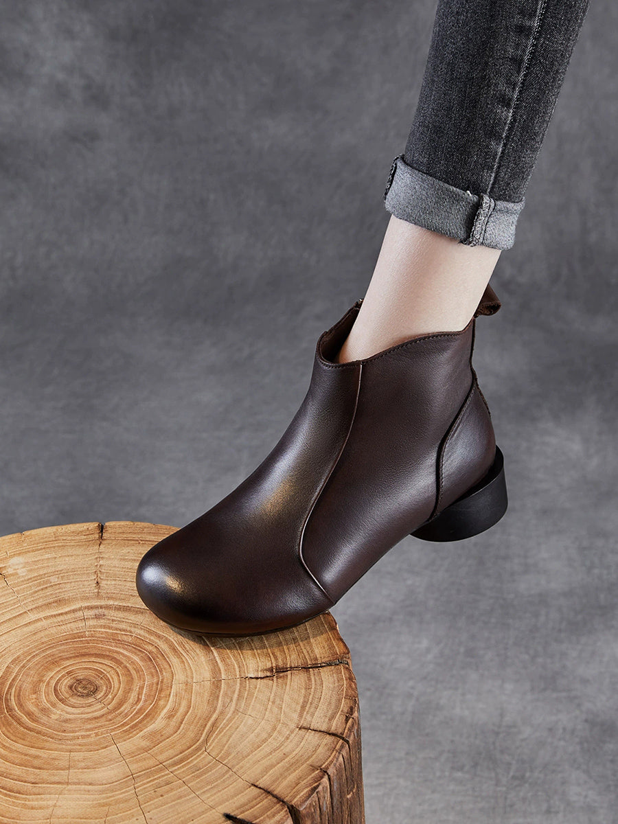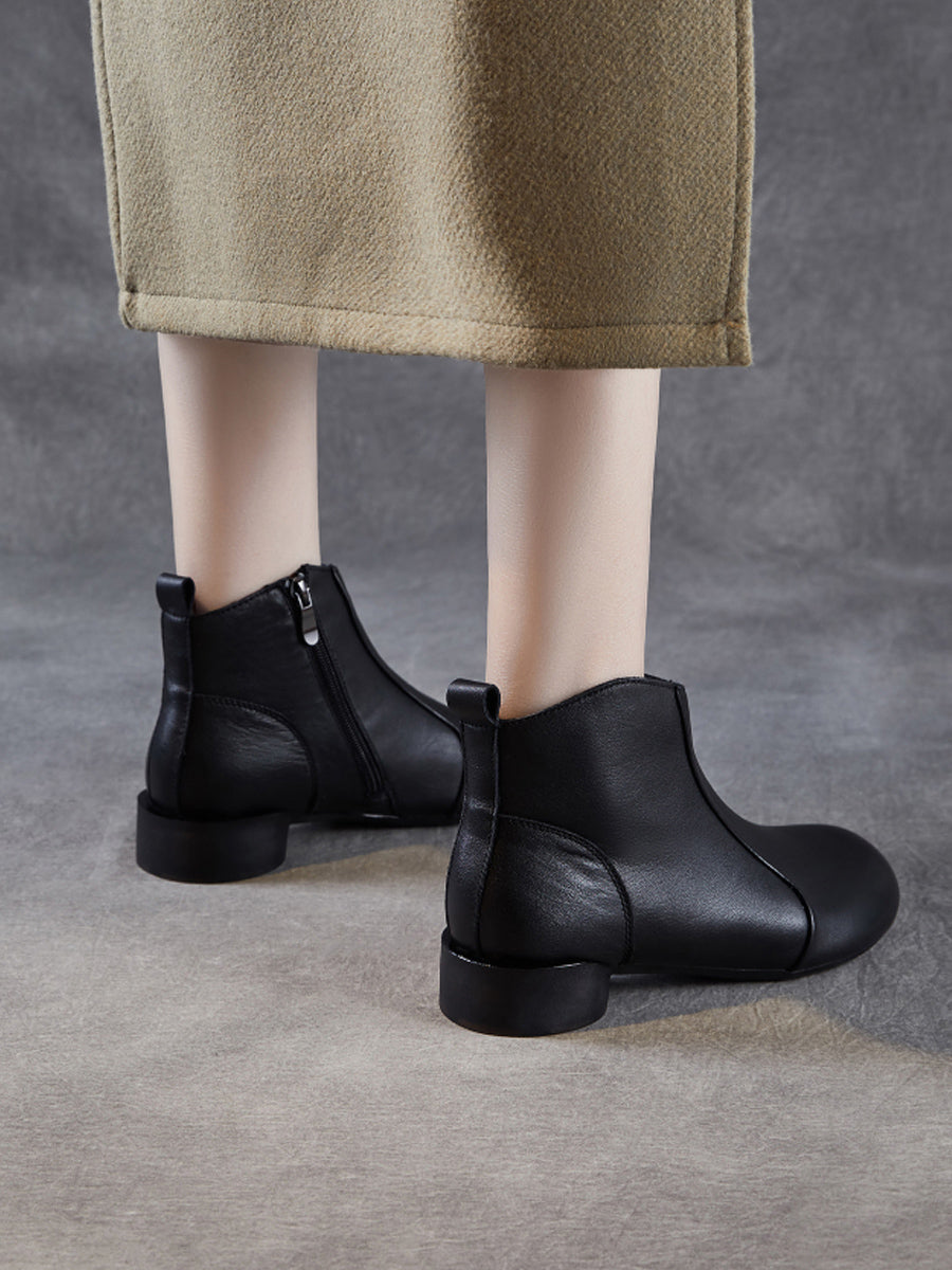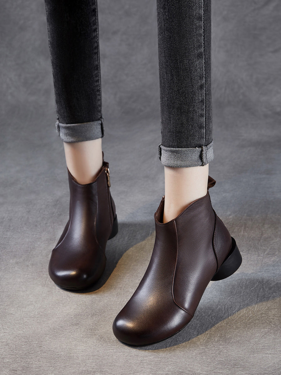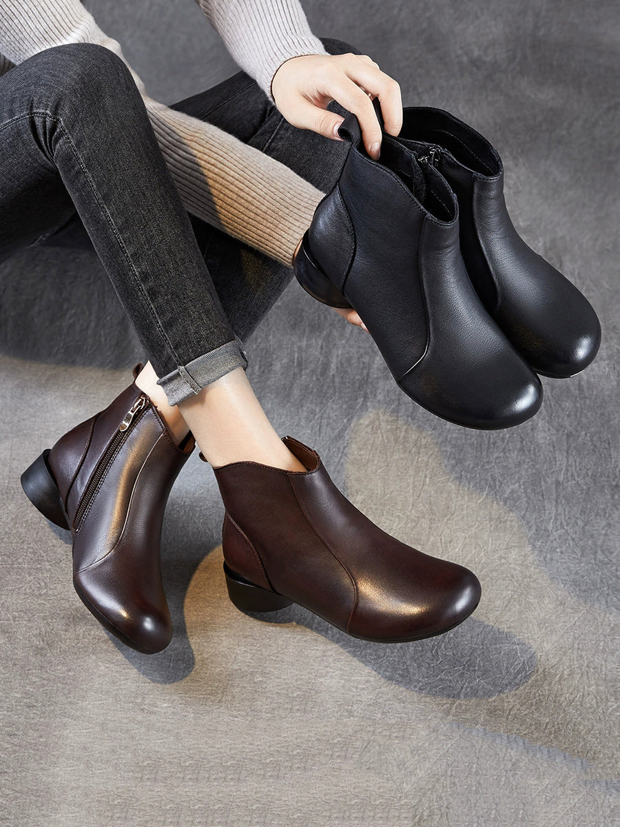 Botines de invierno para mujer, de piel auténtica, con tacón bajo.