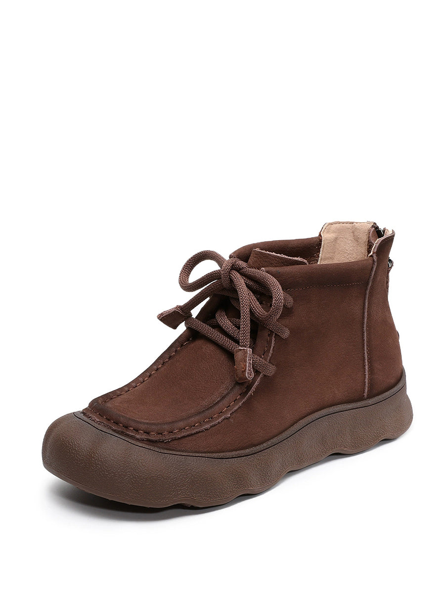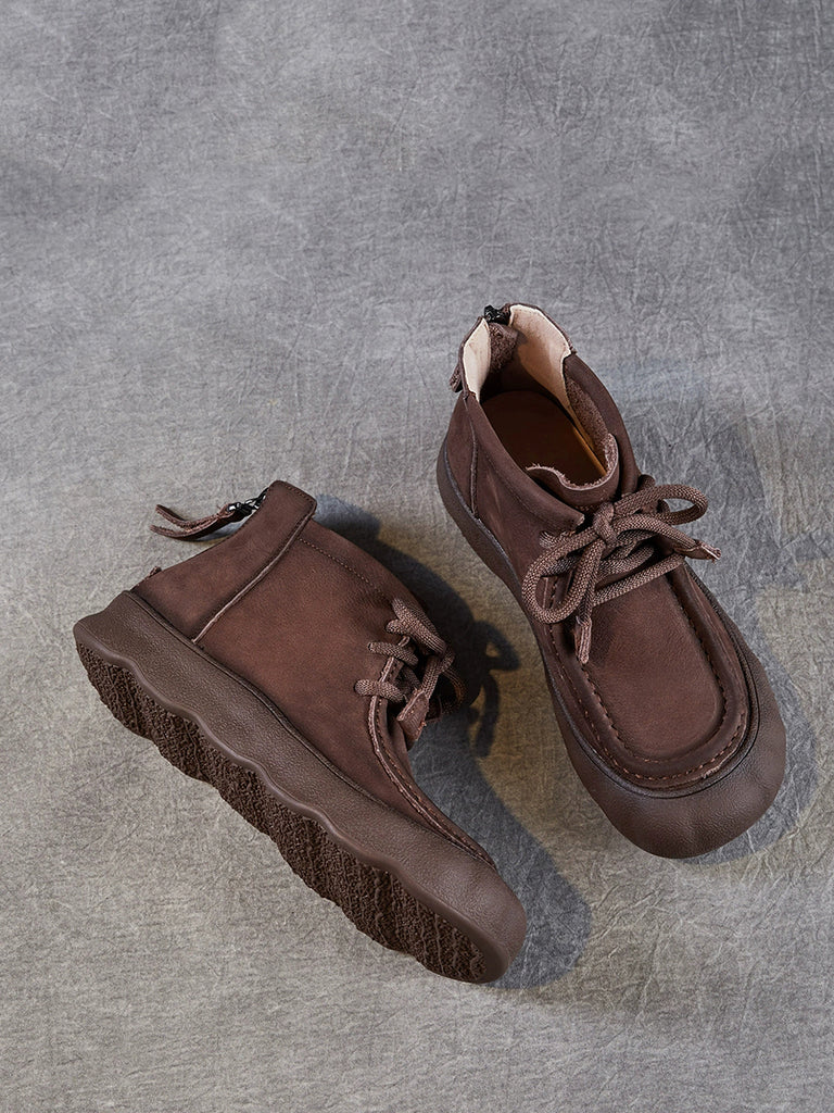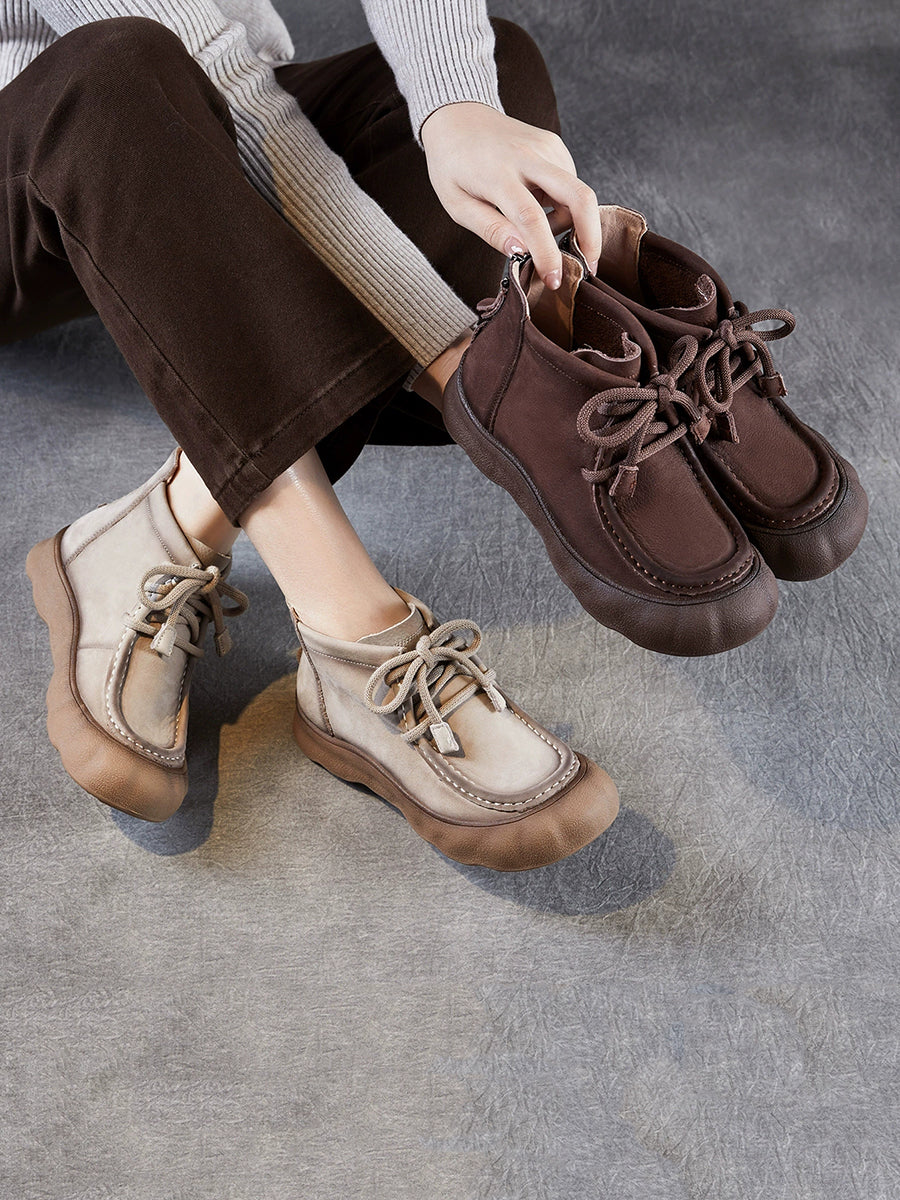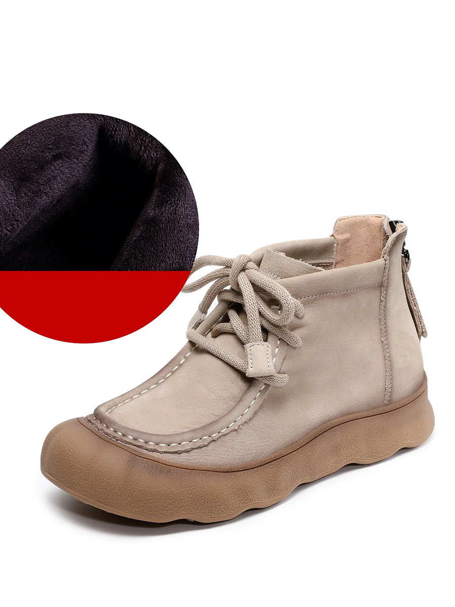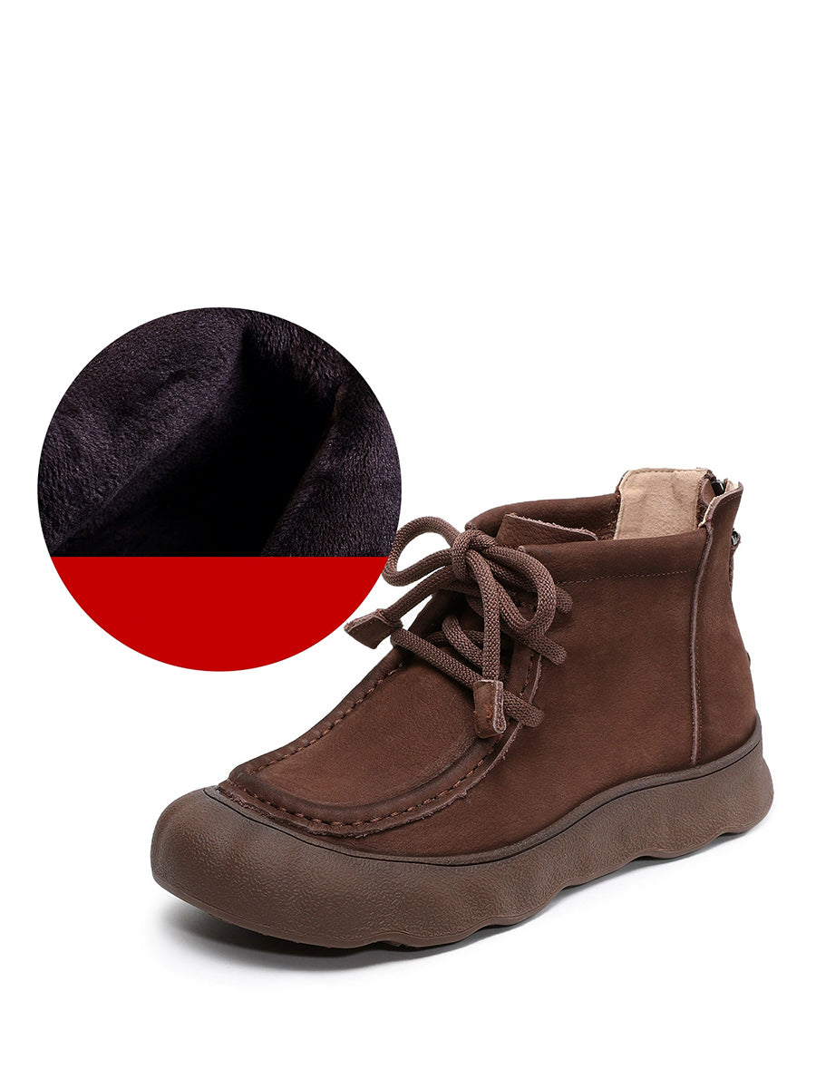 Botines de invierno vintage de piel auténtica para mujer