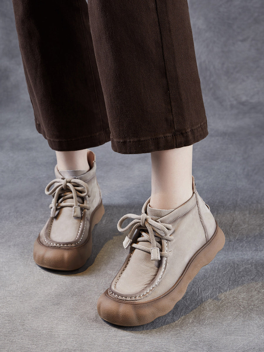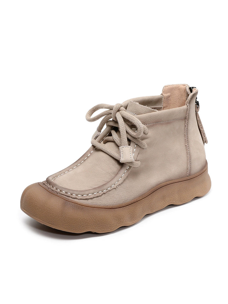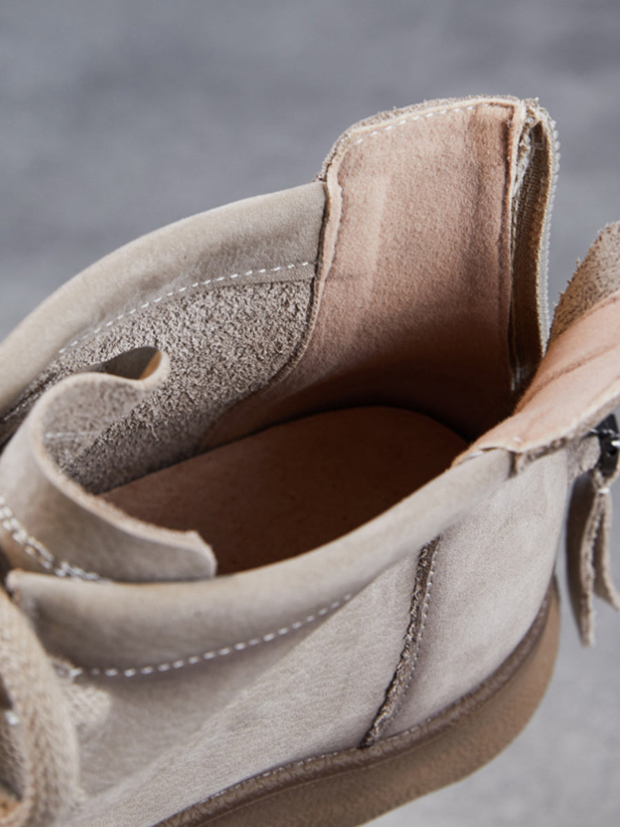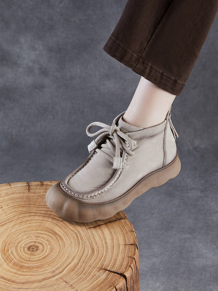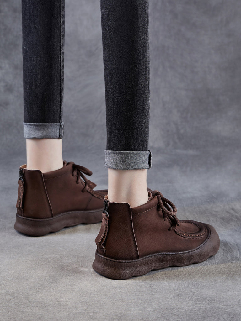 Botines de invierno vintage de piel auténtica para mujer