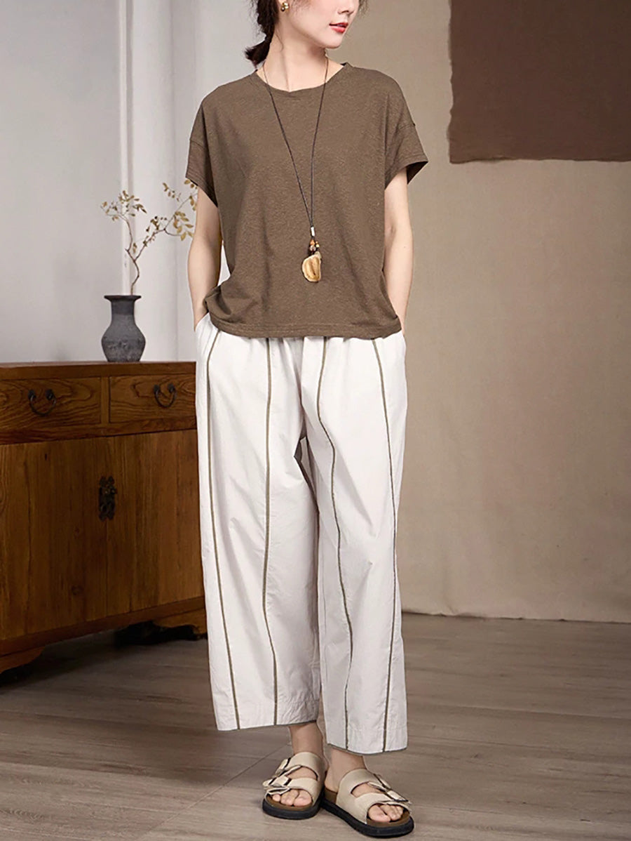 Pantalones rectos de algodón con rayas de primavera para mujer