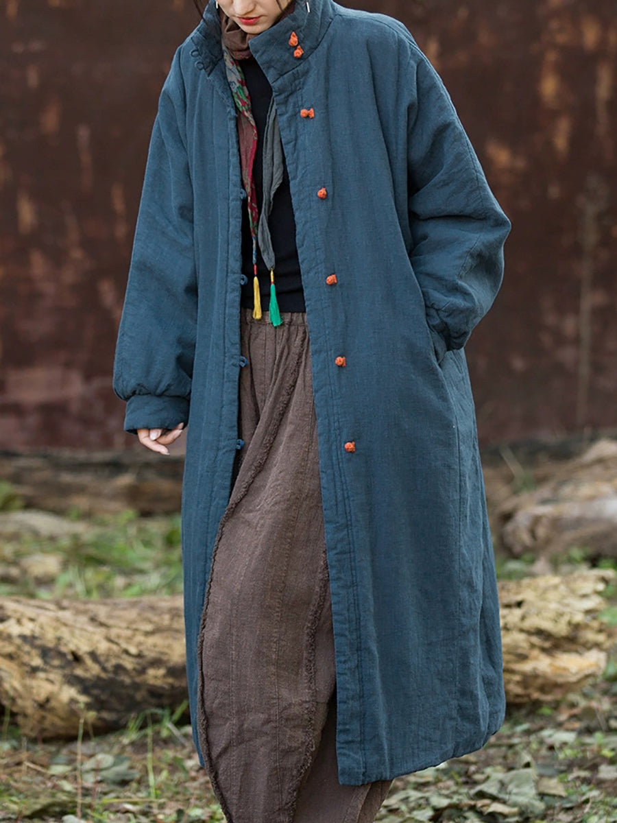 Abrigo acolchado de cuello alto de color puro de invierno para mujer