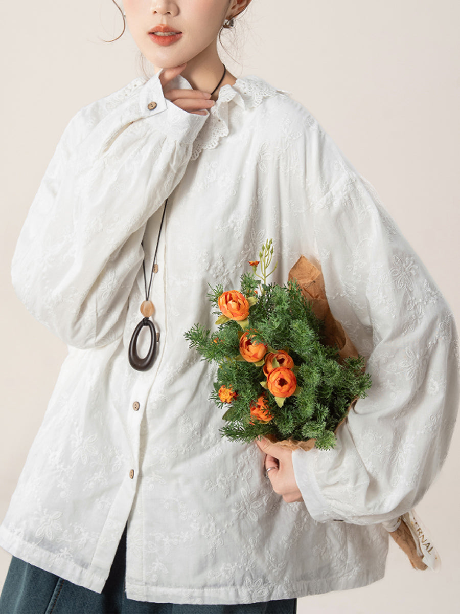 Camisa con cuello vuelto y bordado artístico de otoño para mujer
