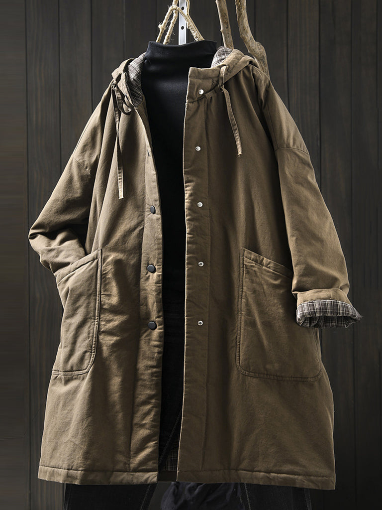 Abrigo acolchado con capucha de color puro informal de otoño para mujer