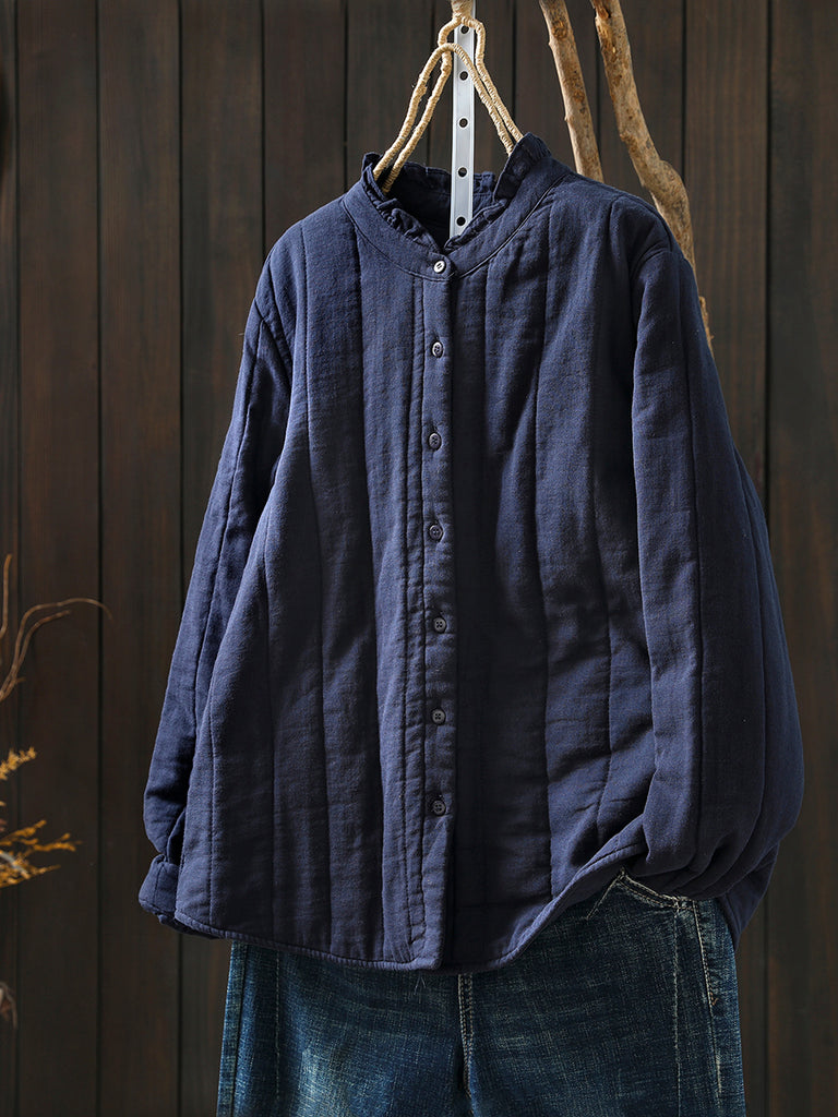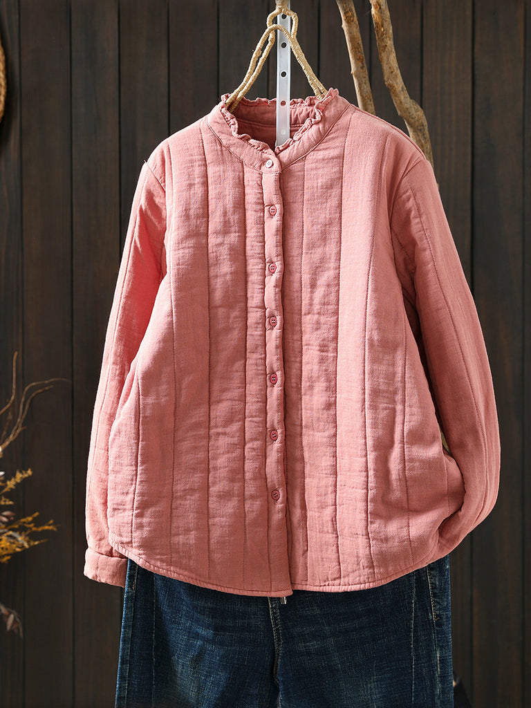 Abrigo acolchado de cuello alto de color puro de invierno para mujer