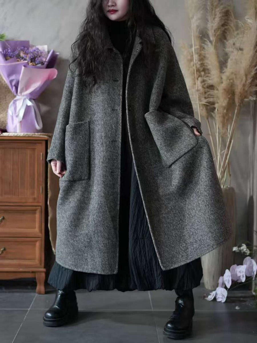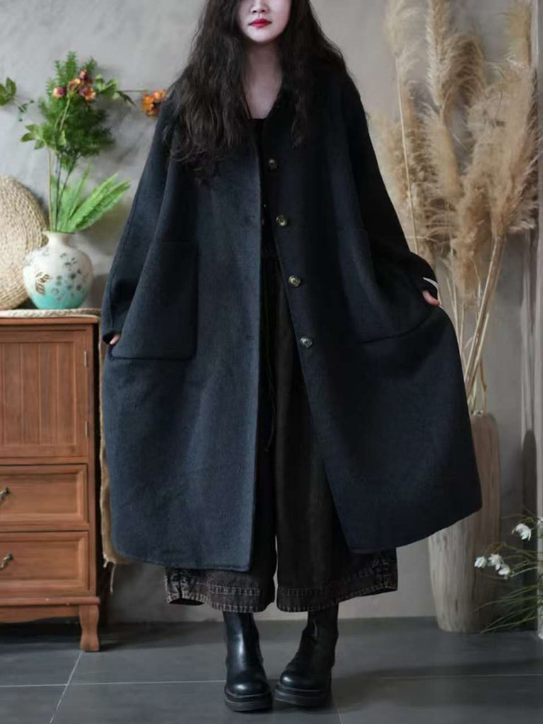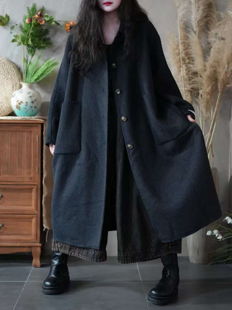 Abrigo de forro polar con cuello vuelto de color puro para mujer de invierno