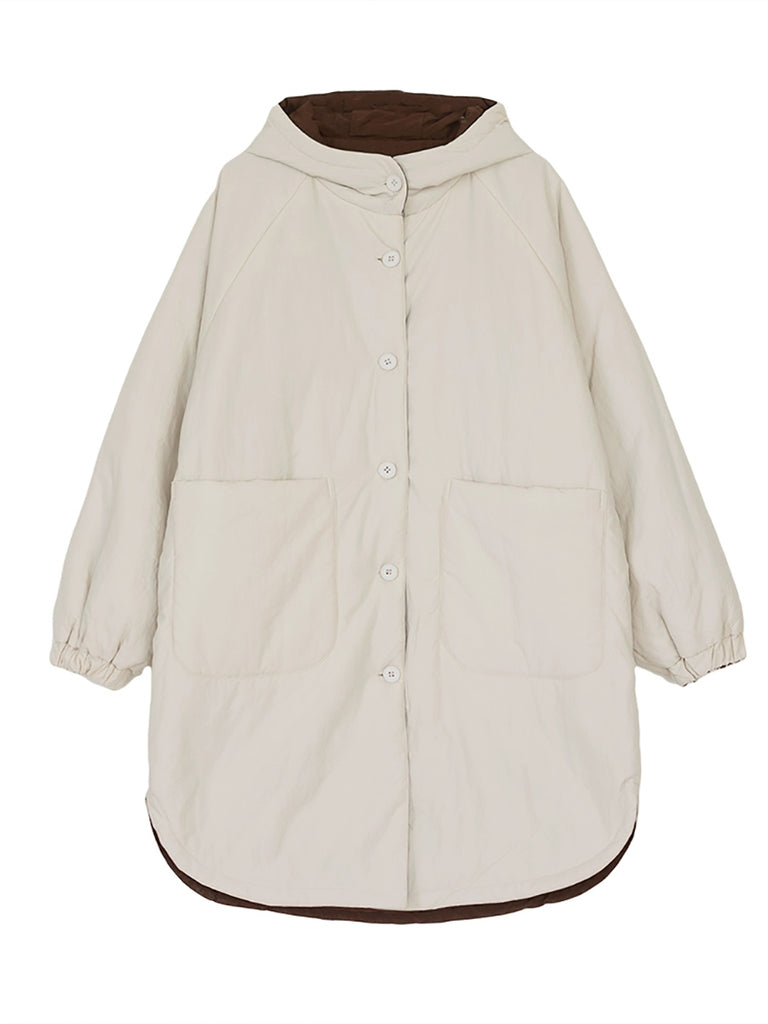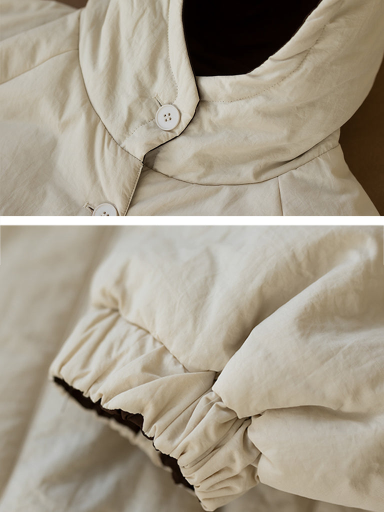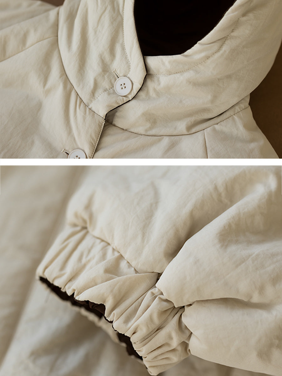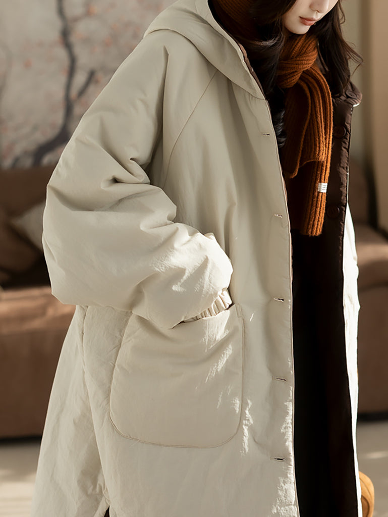 Abrigo acolchado con capucha de color puro retro de invierno para mujer