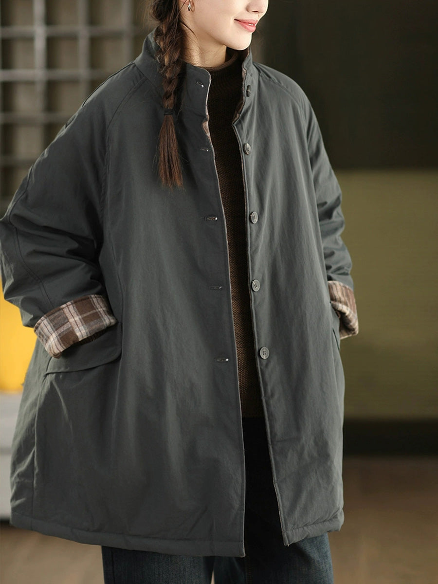 Abrigo acolchado de invierno de color puro con doble cara para mujer