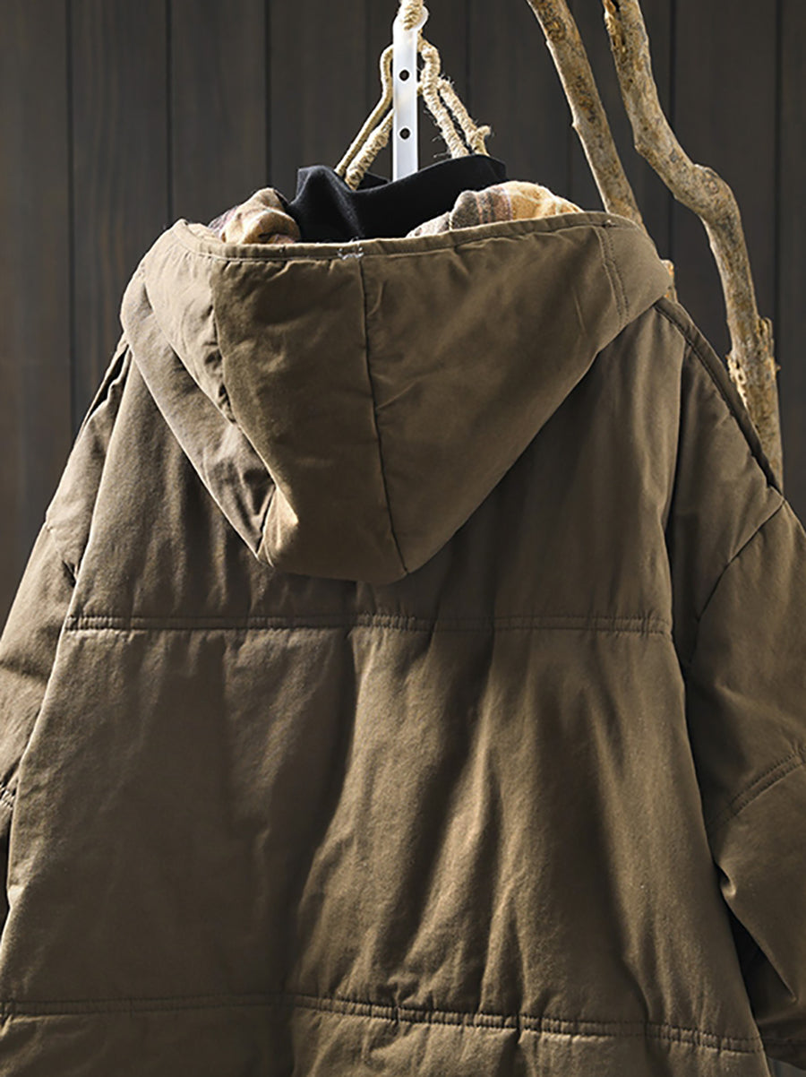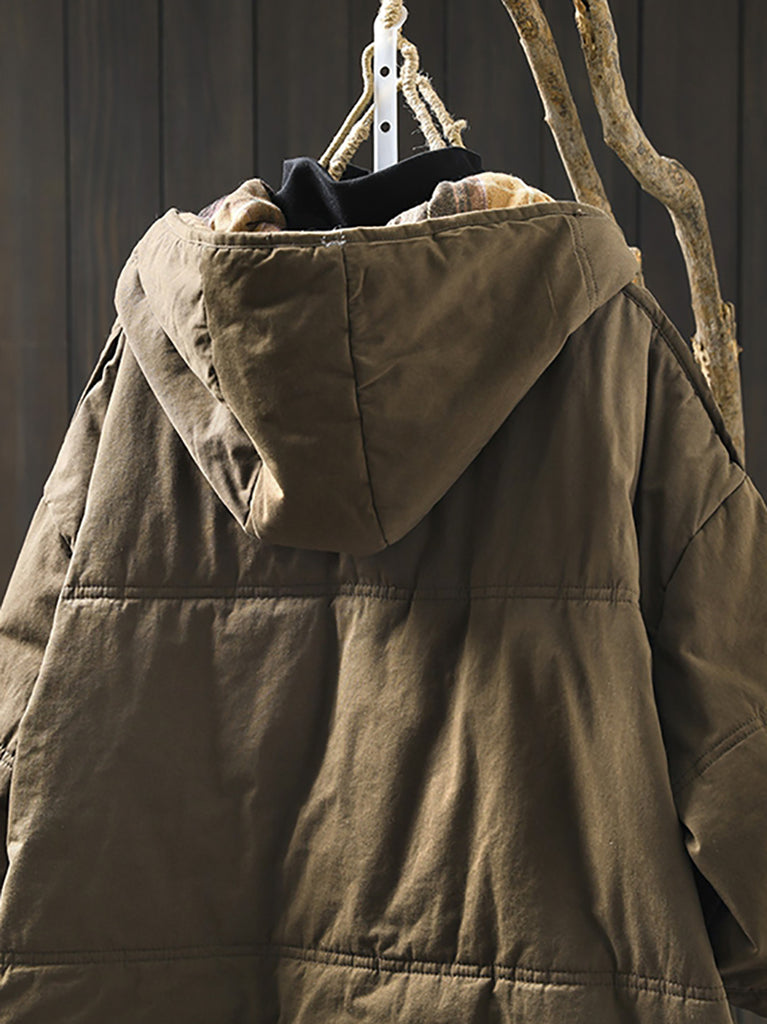 Abrigo acolchado con capucha de color puro de invierno para mujer