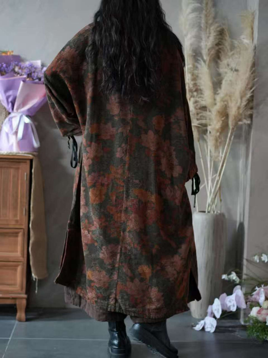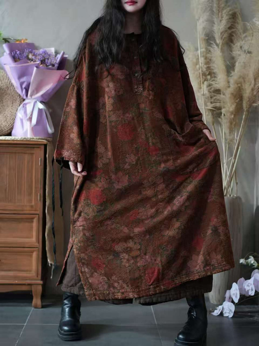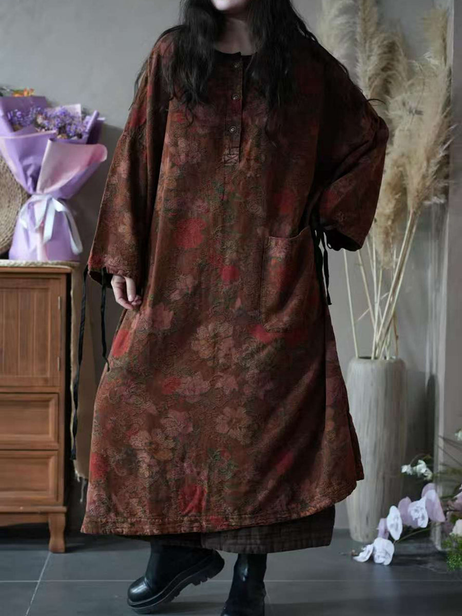 Vestido de mujer estilo vintage otoñal con cuello redondo y estampado floral