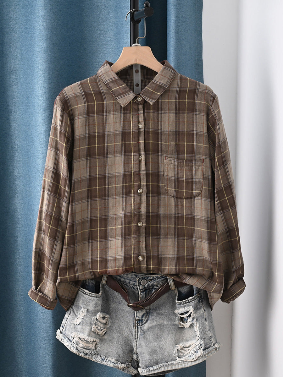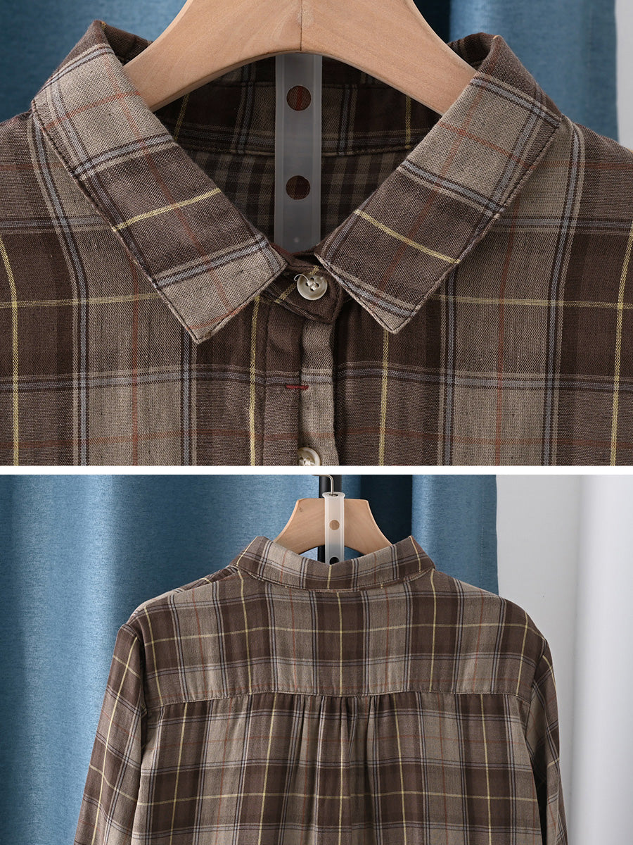 Camisa de cuadros escoceses Artsy Spring para mujer, 100 % algodón
