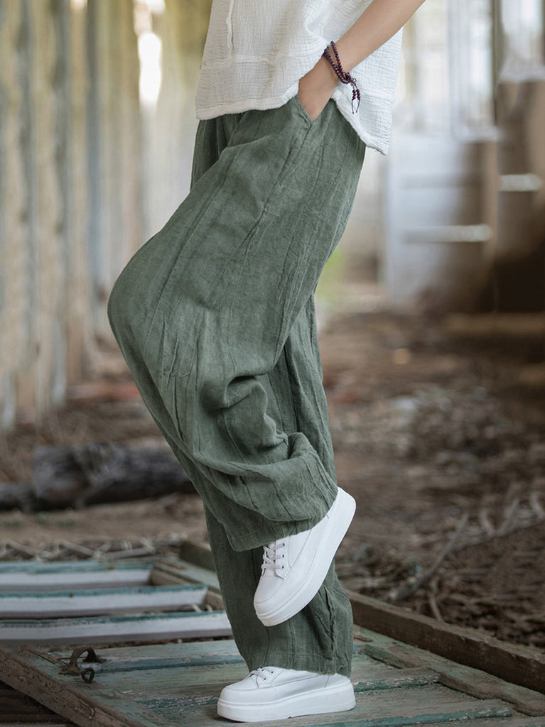 Pantalones harén de ramio con efecto tie-dye vintage para mujer
