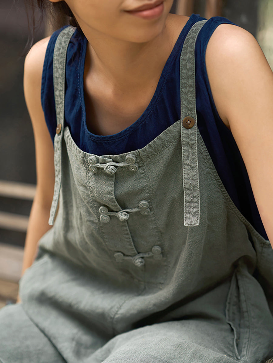 Monos de verano para mujer, estilo retro, de color puro, 100 % cáñamo