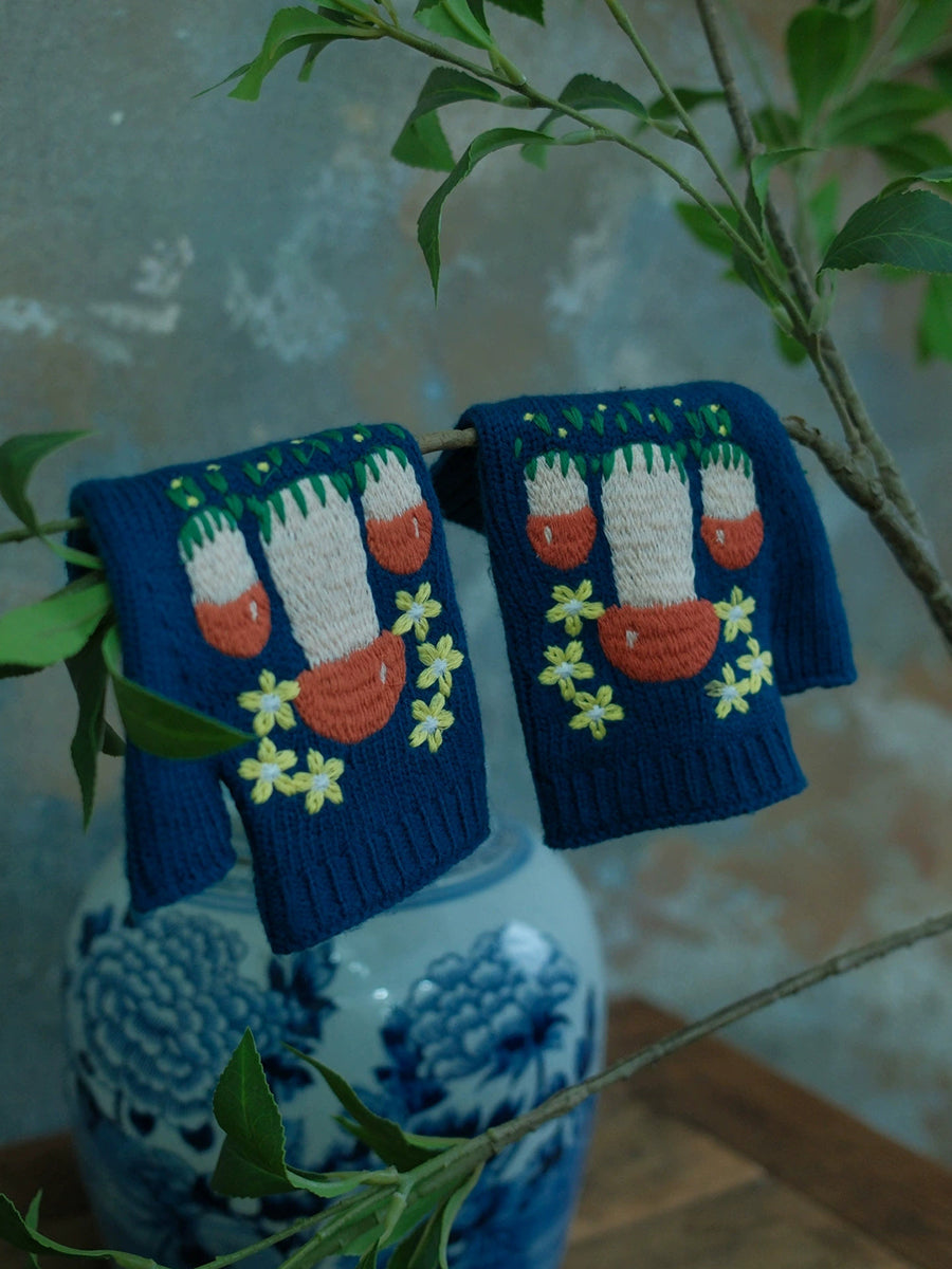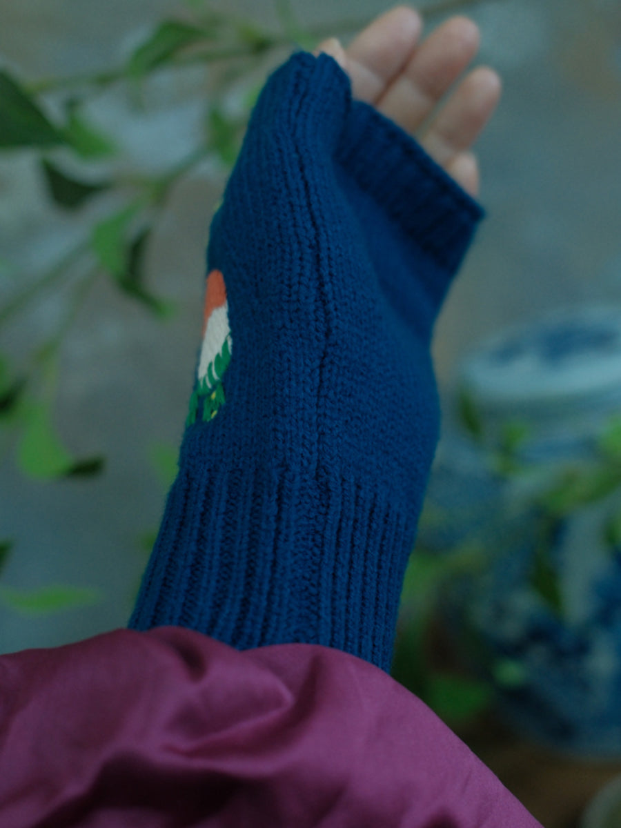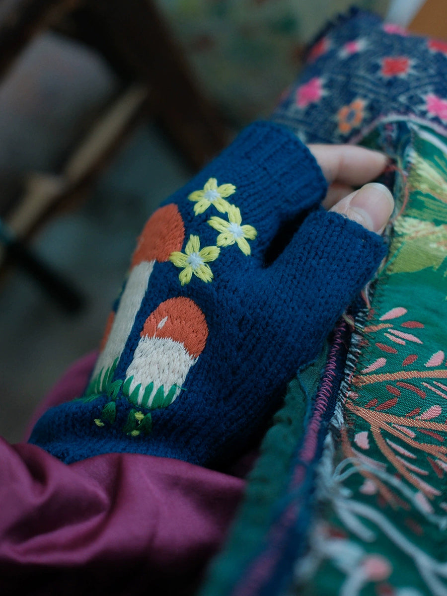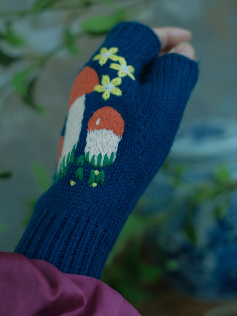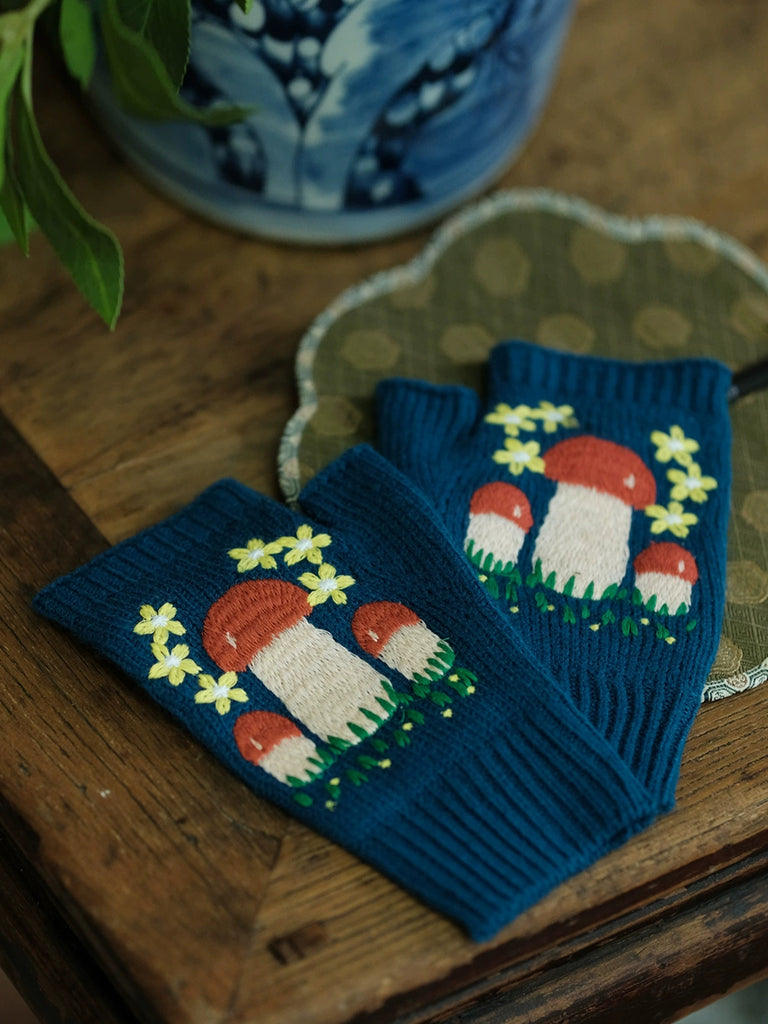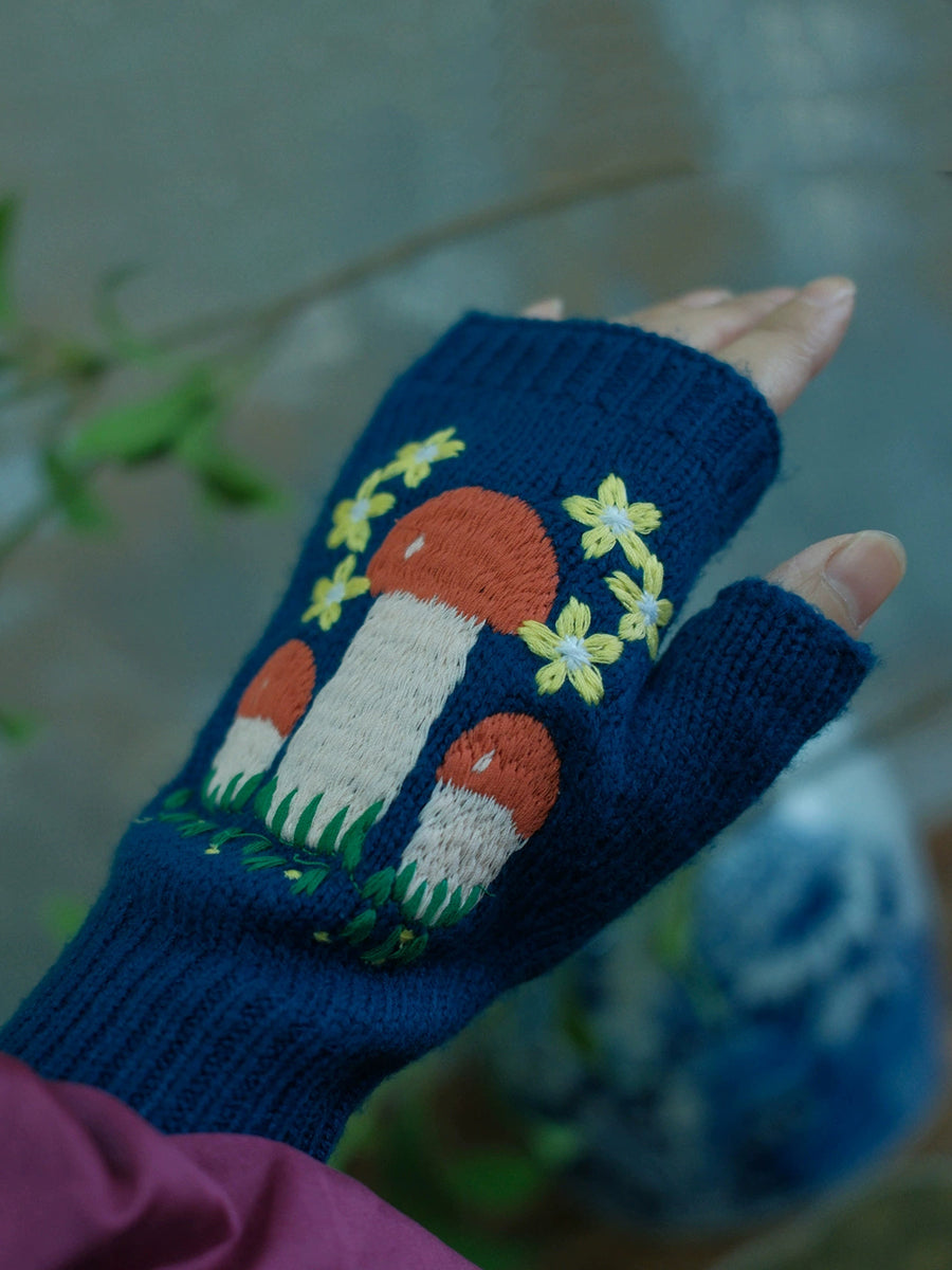 Guantes de punto vintage con forma de seta para mujer