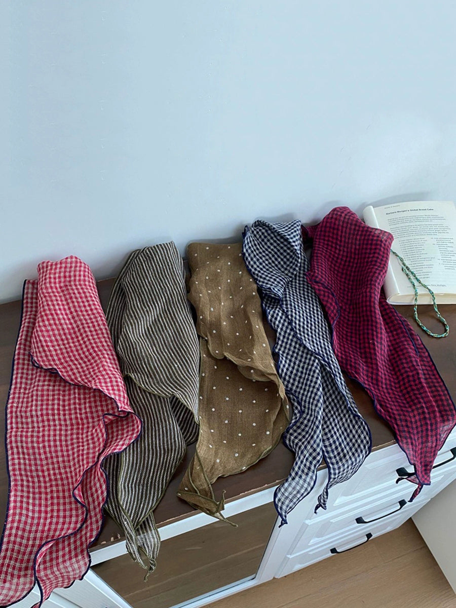 Bufanda triangular de rayas, lunares y cuadros suaves y artísticos