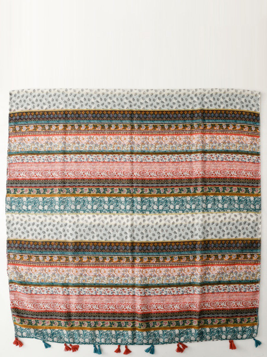 Bufanda tipo chal con borlas y estampado floral bohemio para mujer