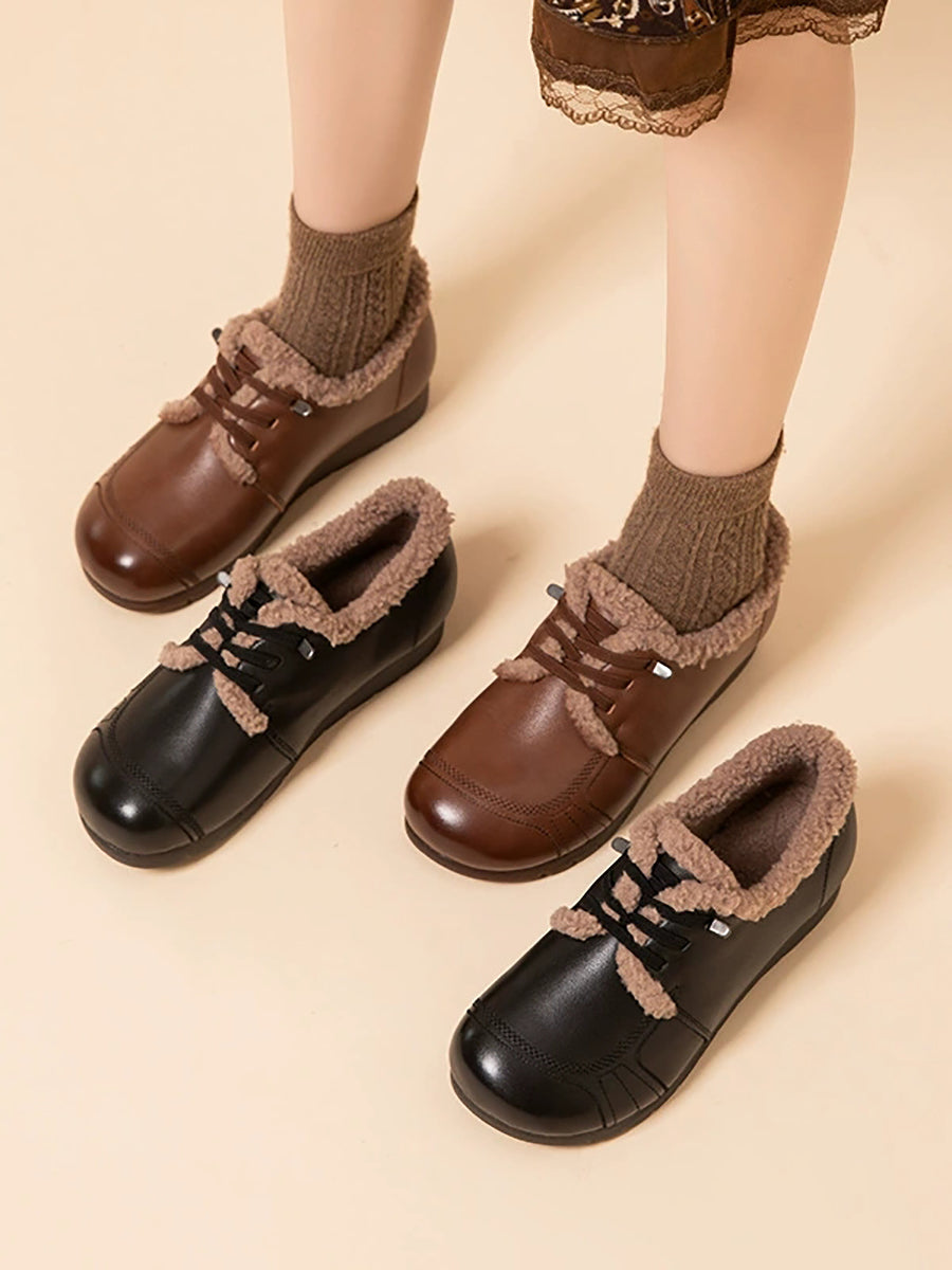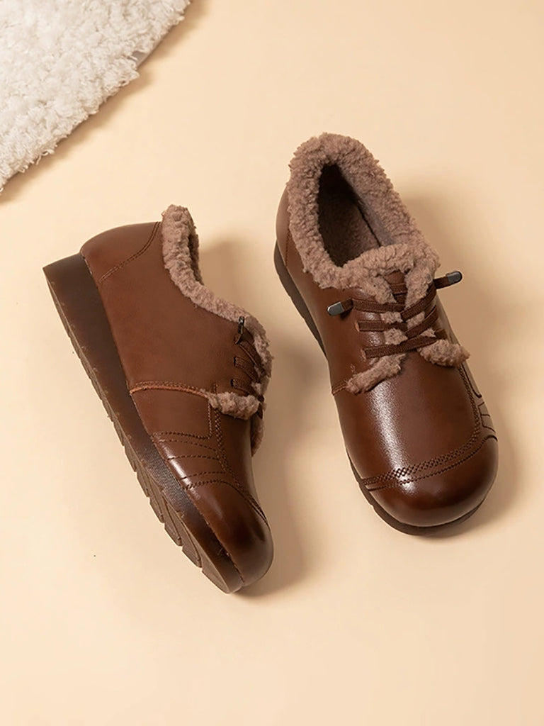 Zapatos de invierno para mujer de piel auténtica con forro polar