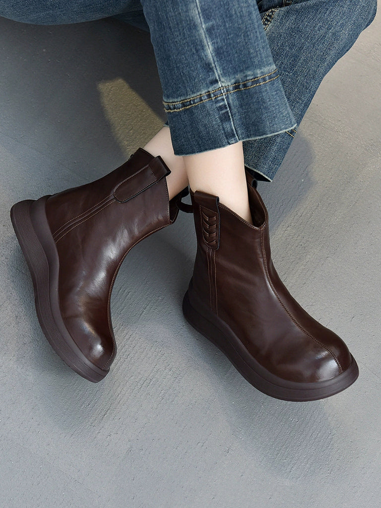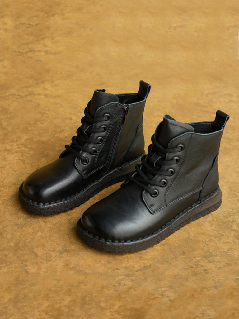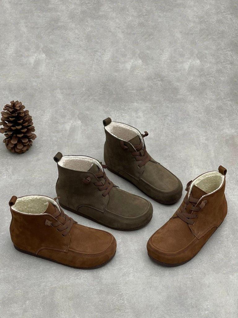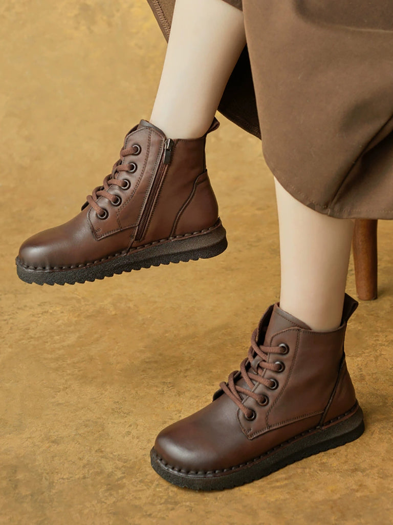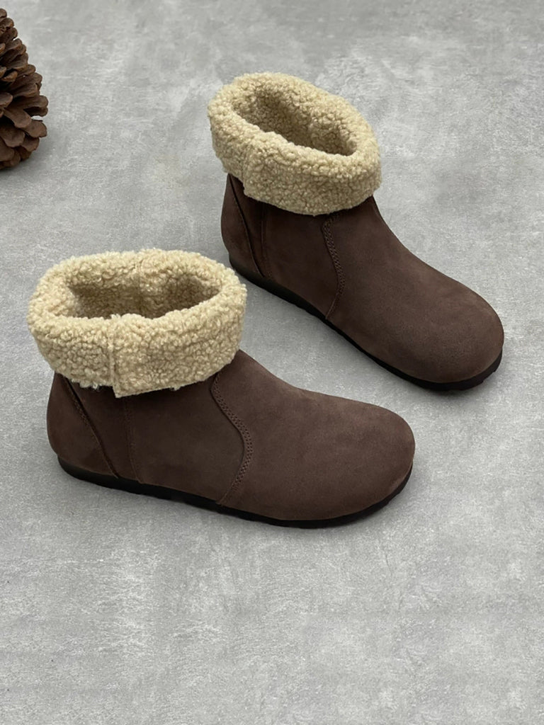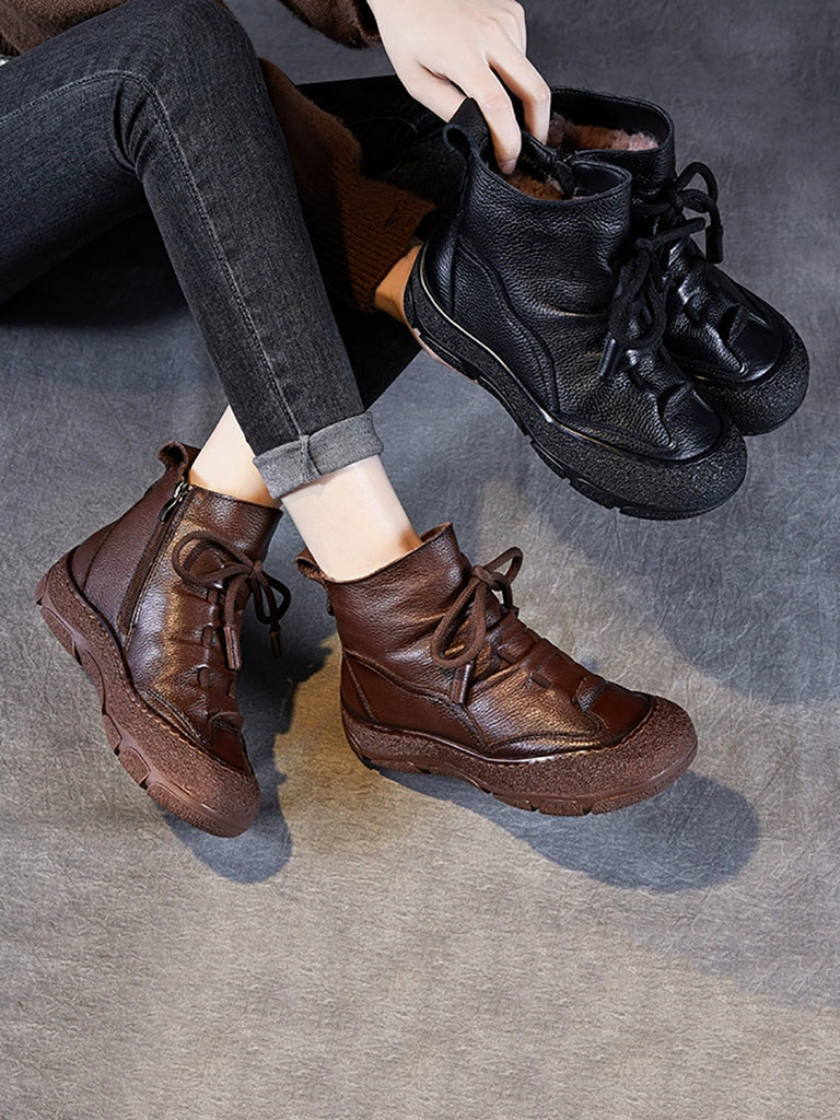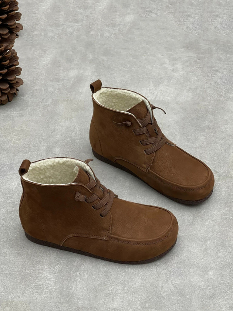 Botines vintage de piel auténtica con forro polar para mujer