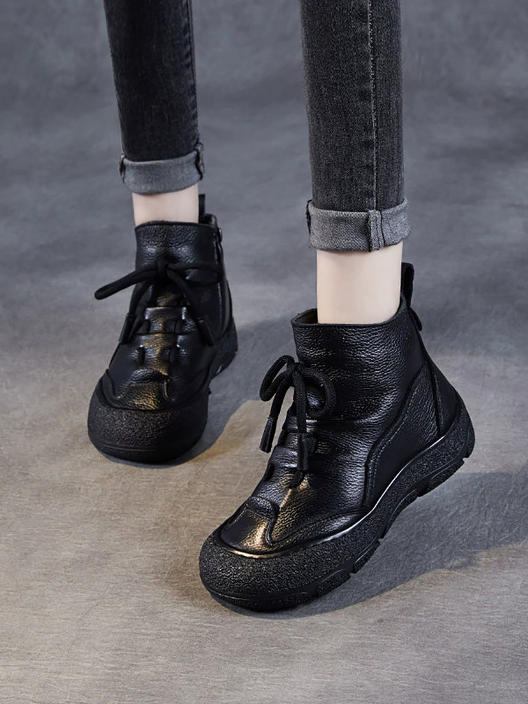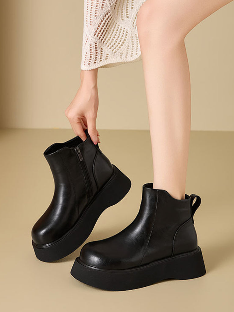 Botas de plataforma de piel de color puro para mujer, de invierno