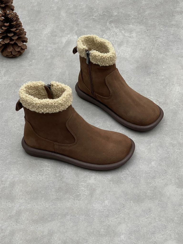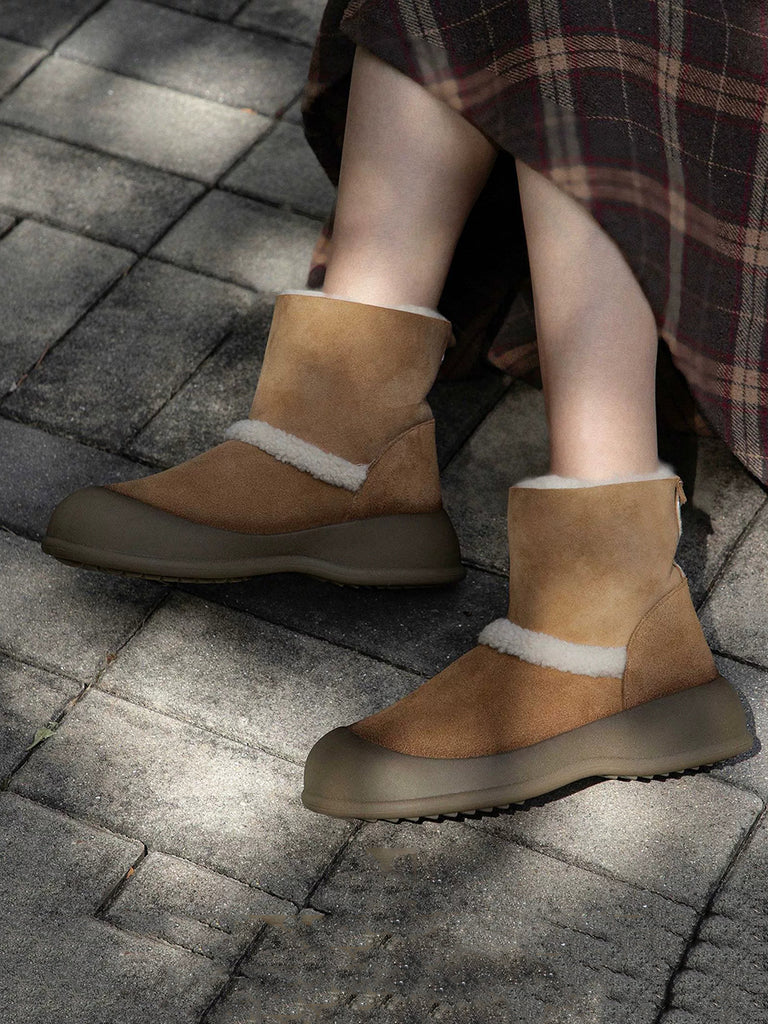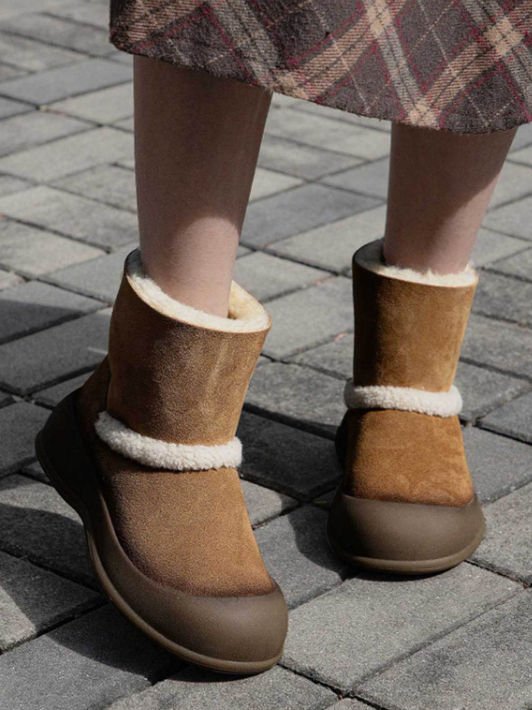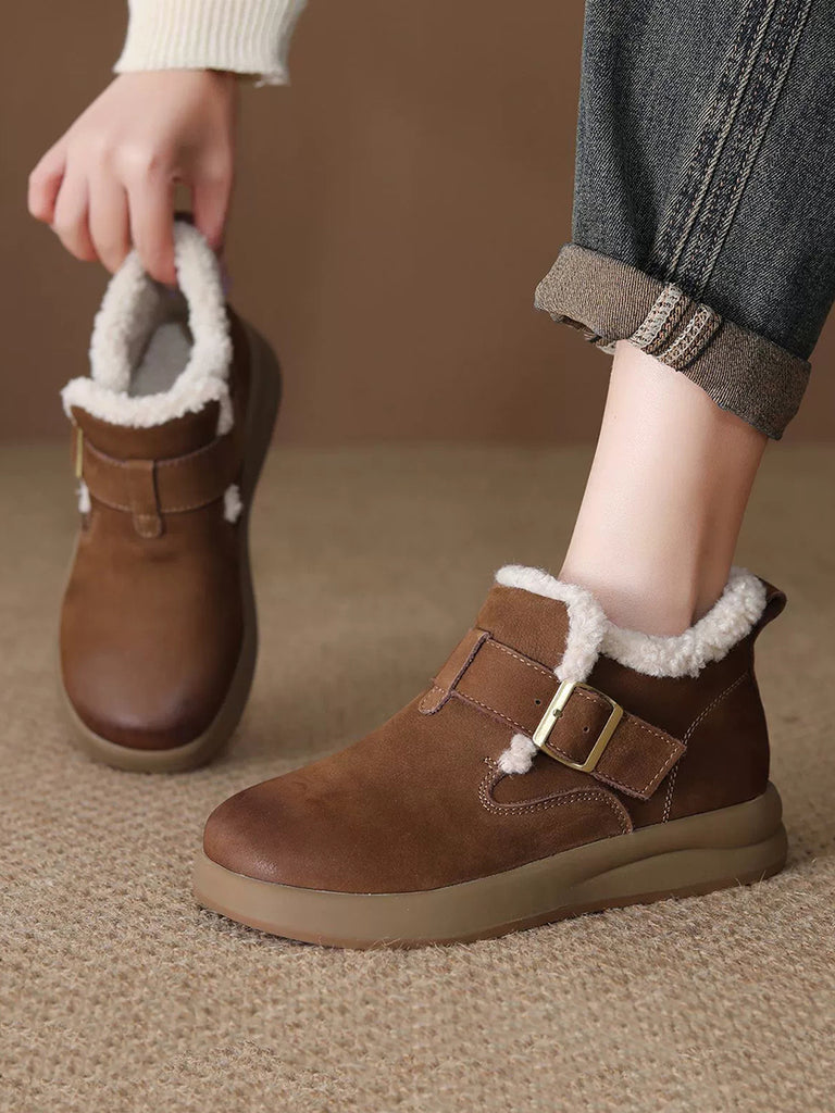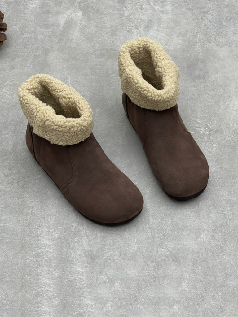 Botas de nieve de invierno para mujer con forro polar y piel de ante