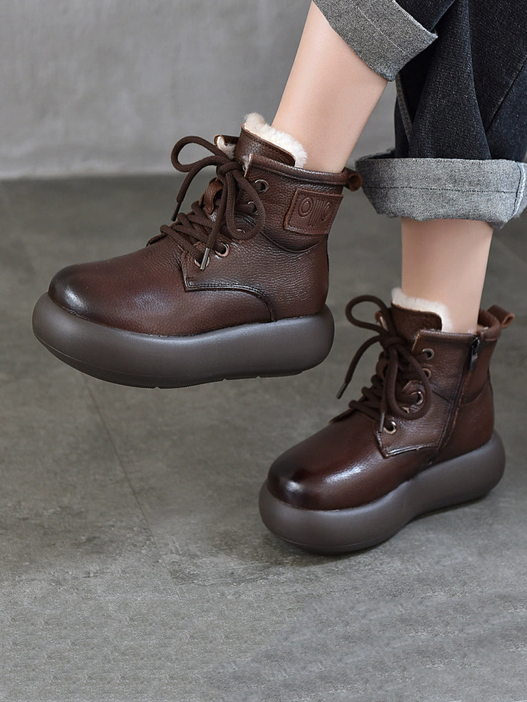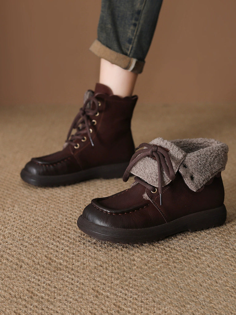 Botas vintage de piel de invierno con forro polar para mujer