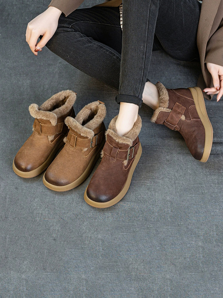 Zapatos vintage de piel auténtica con forro polar para mujer