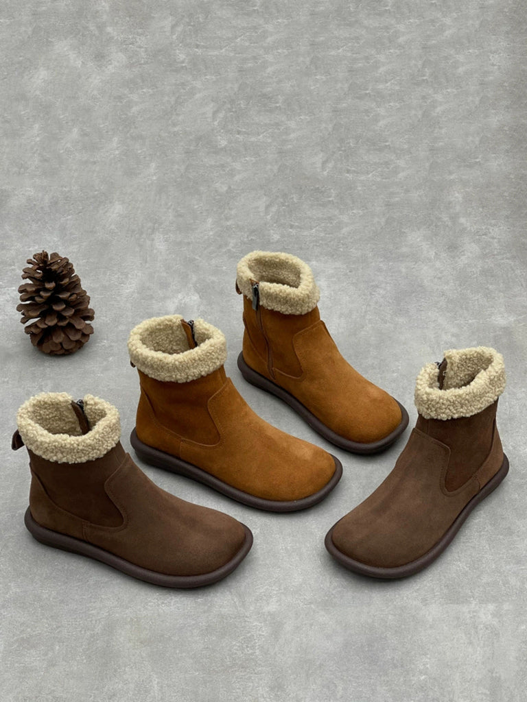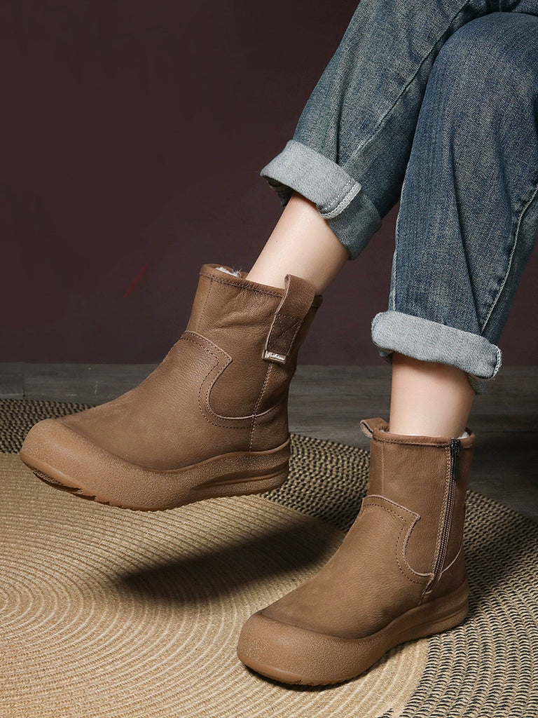 Botas de invierno para mujer de piel de color puro con forro polar