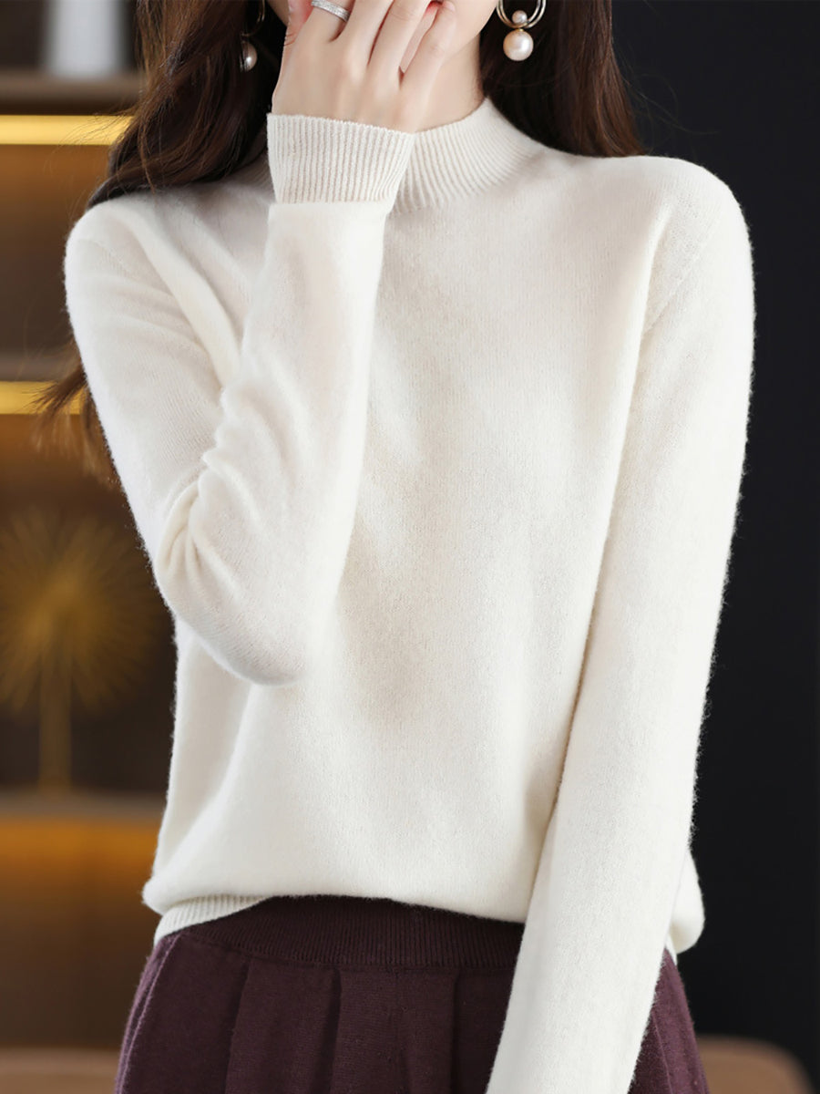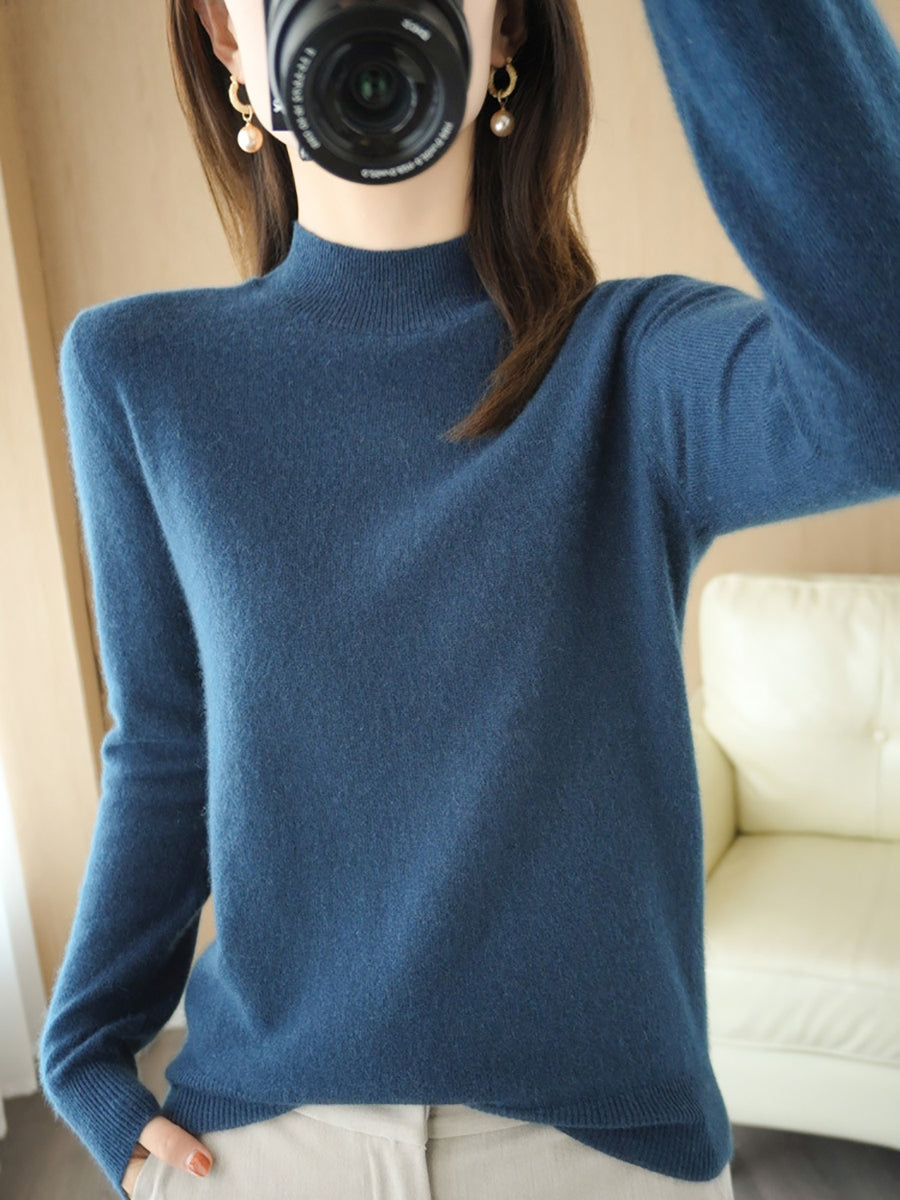 Suéter de cuello alto medio de color puro y artístico de otoño para mujer