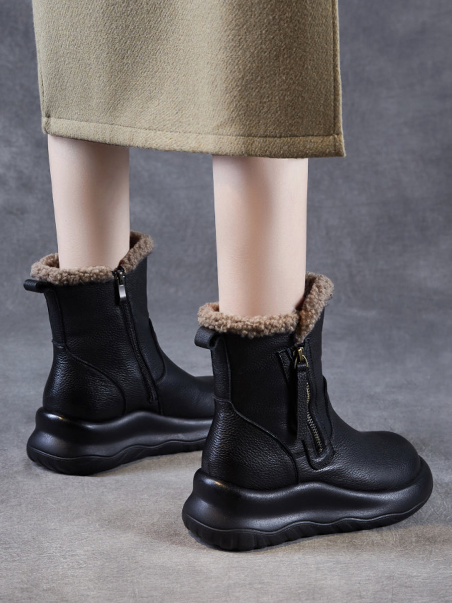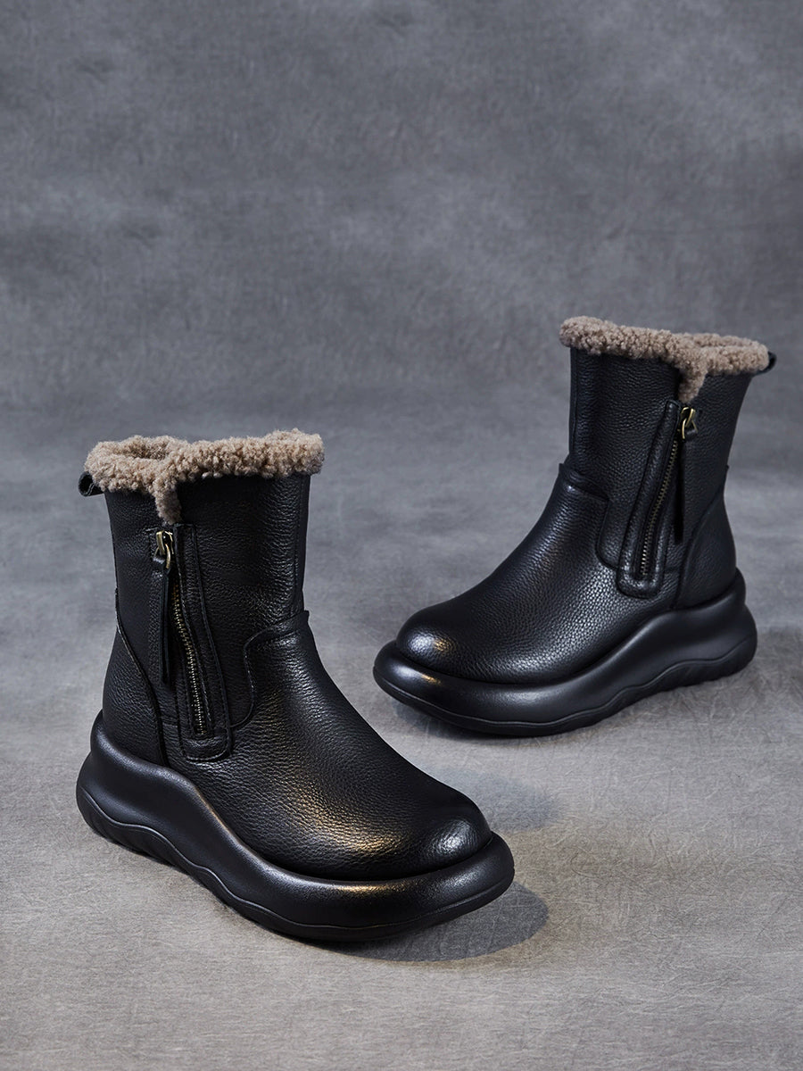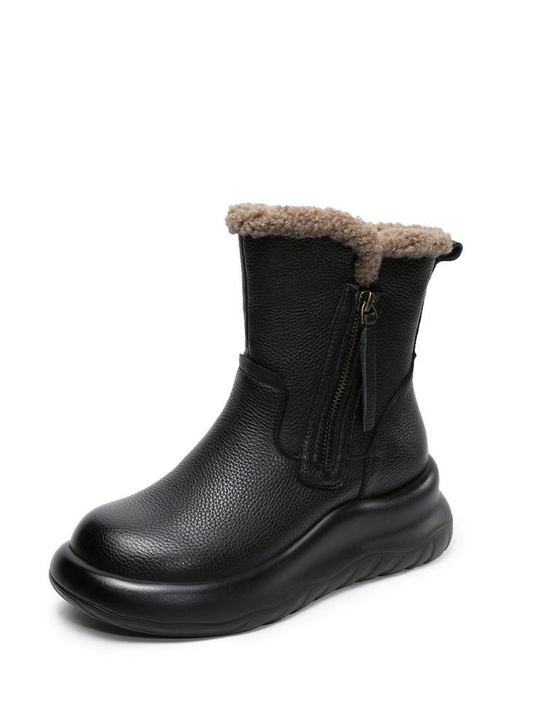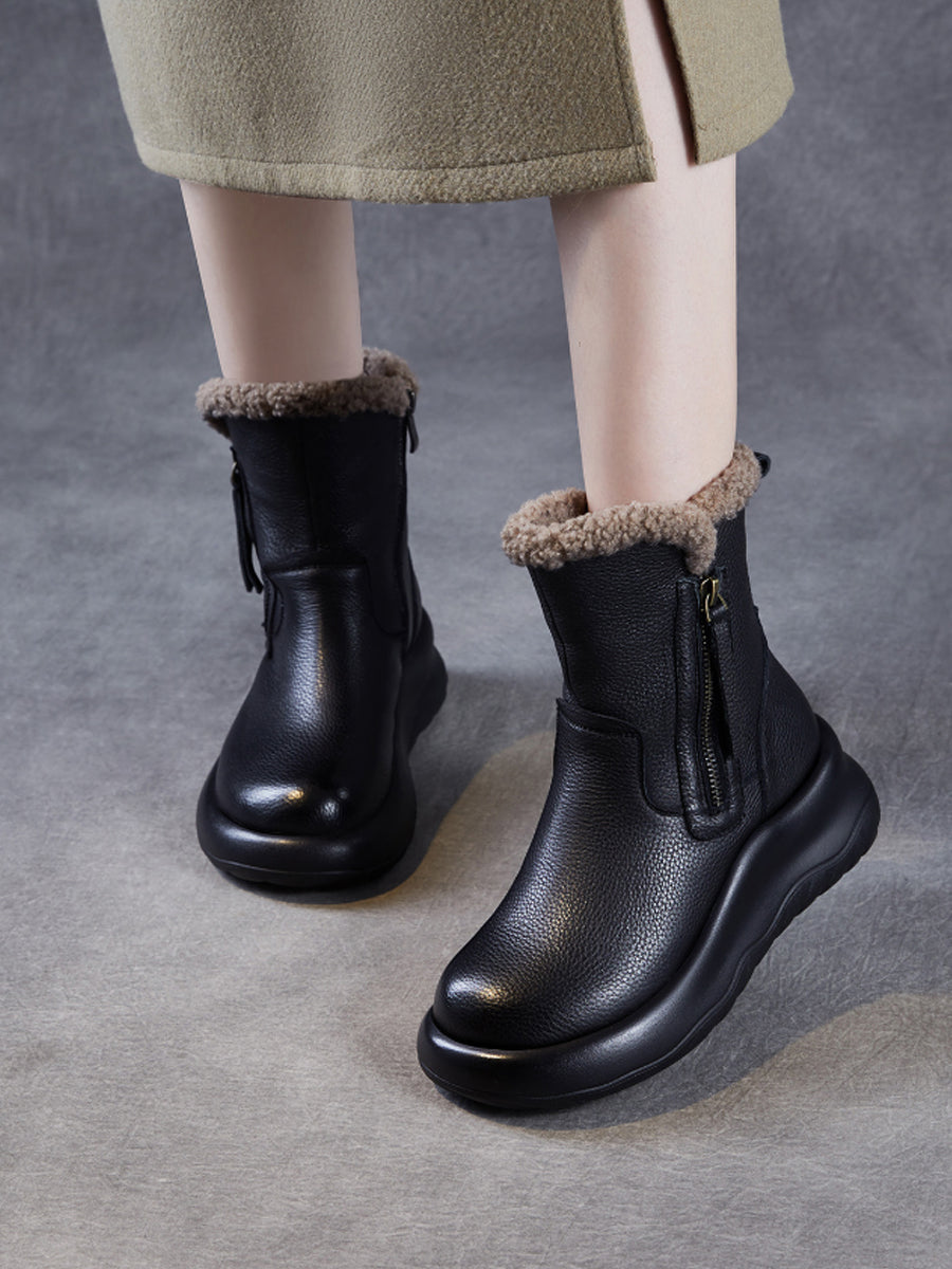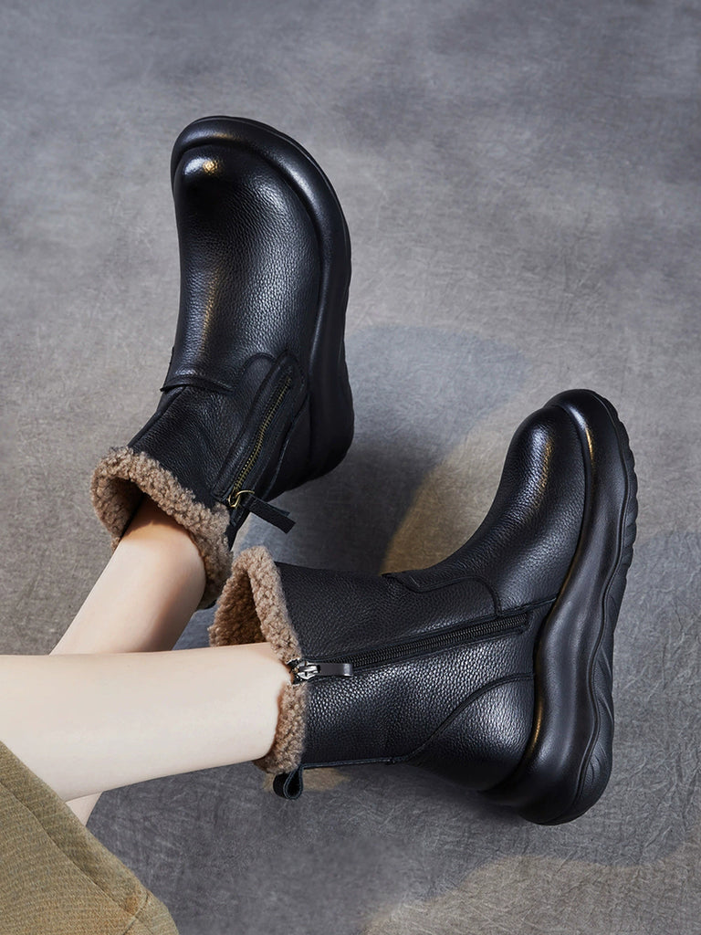 Botas de invierno de piel auténtica con forro polar para mujer