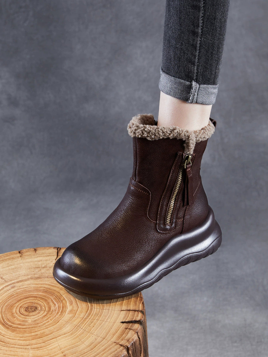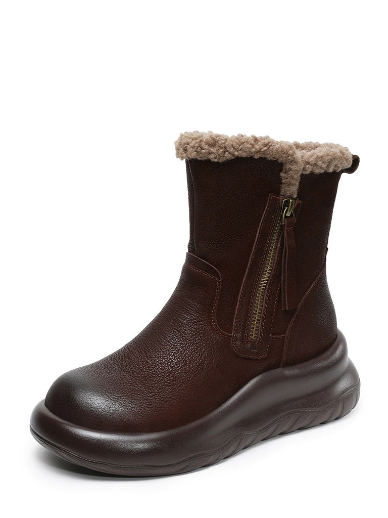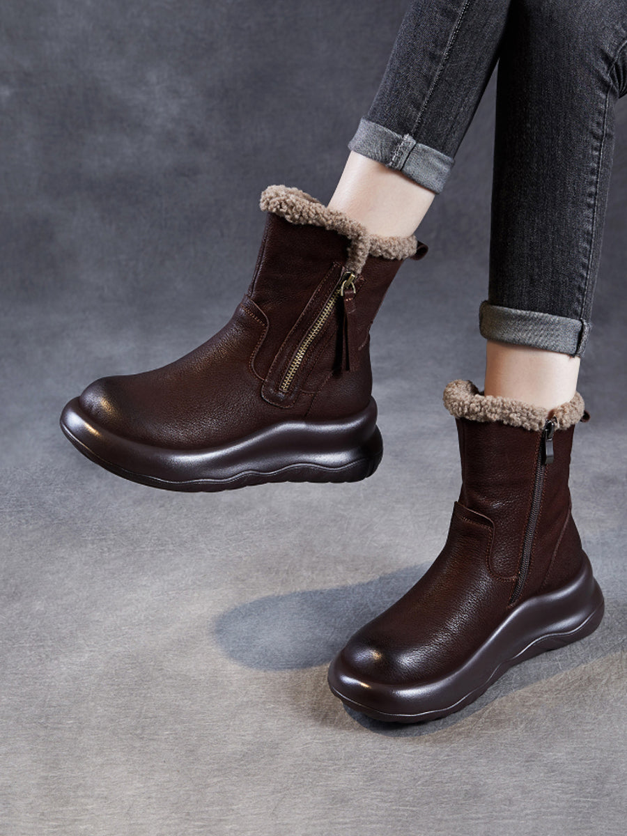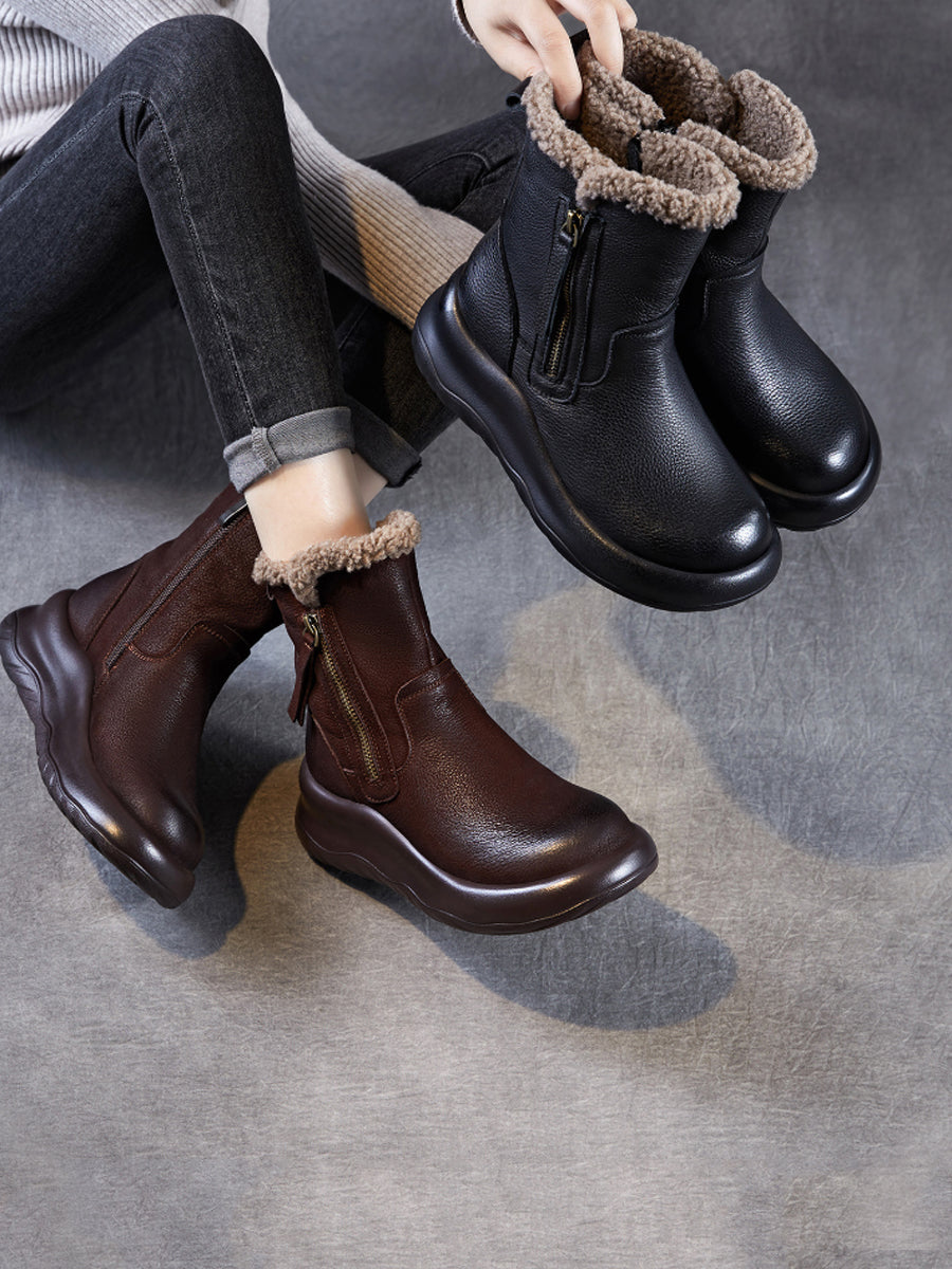 Botas de invierno de piel auténtica con forro polar para mujer
