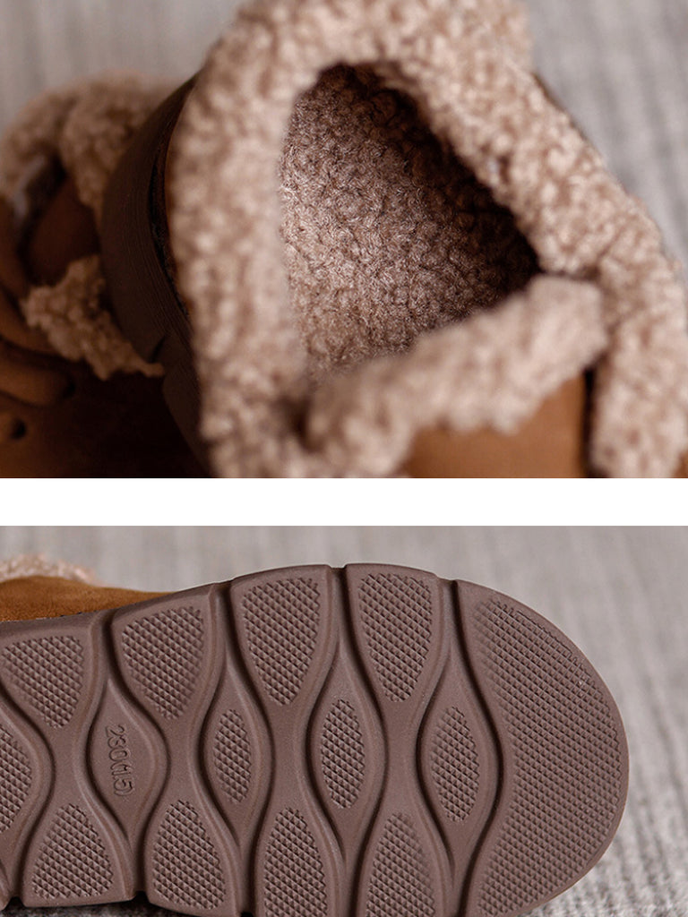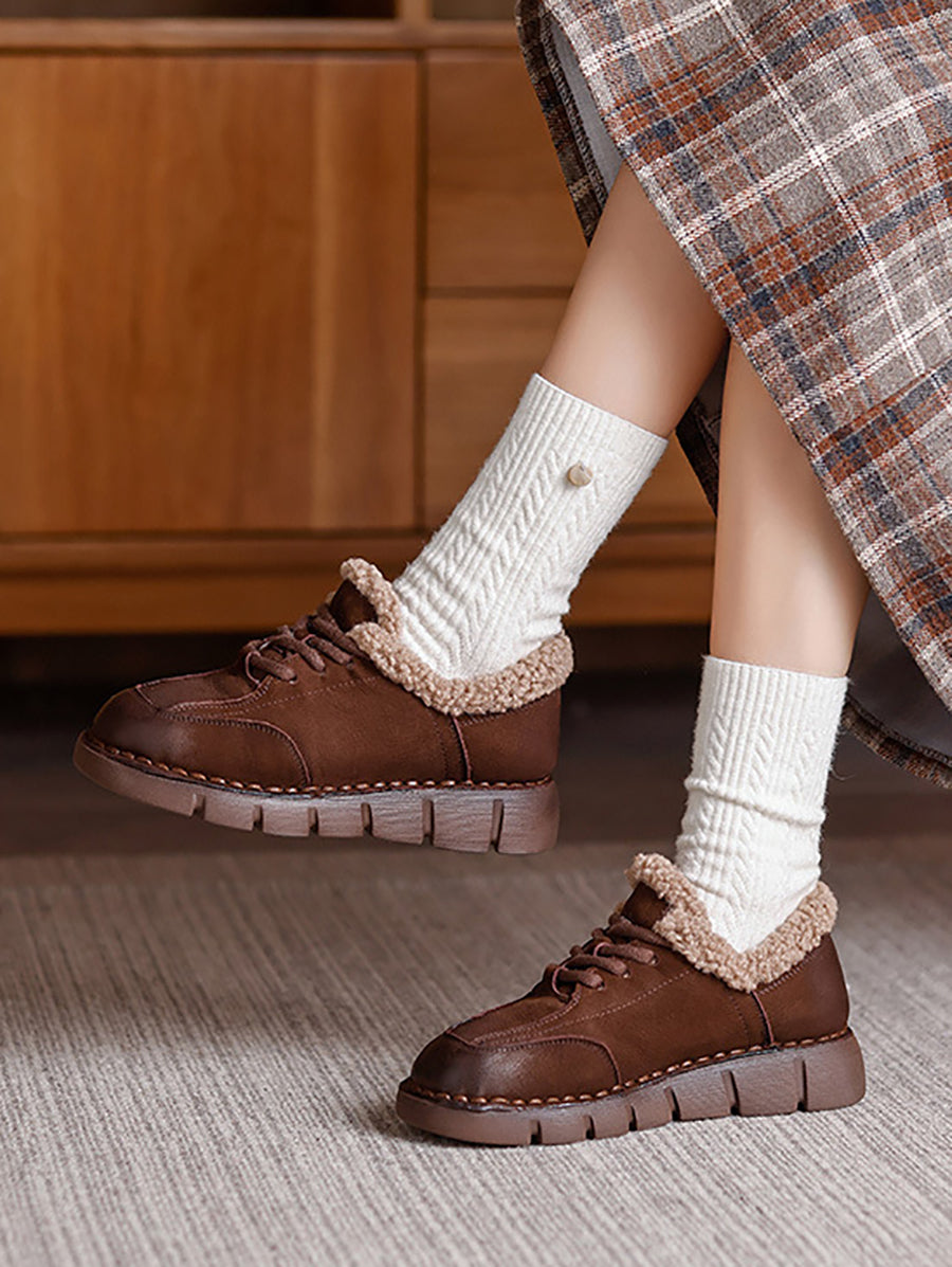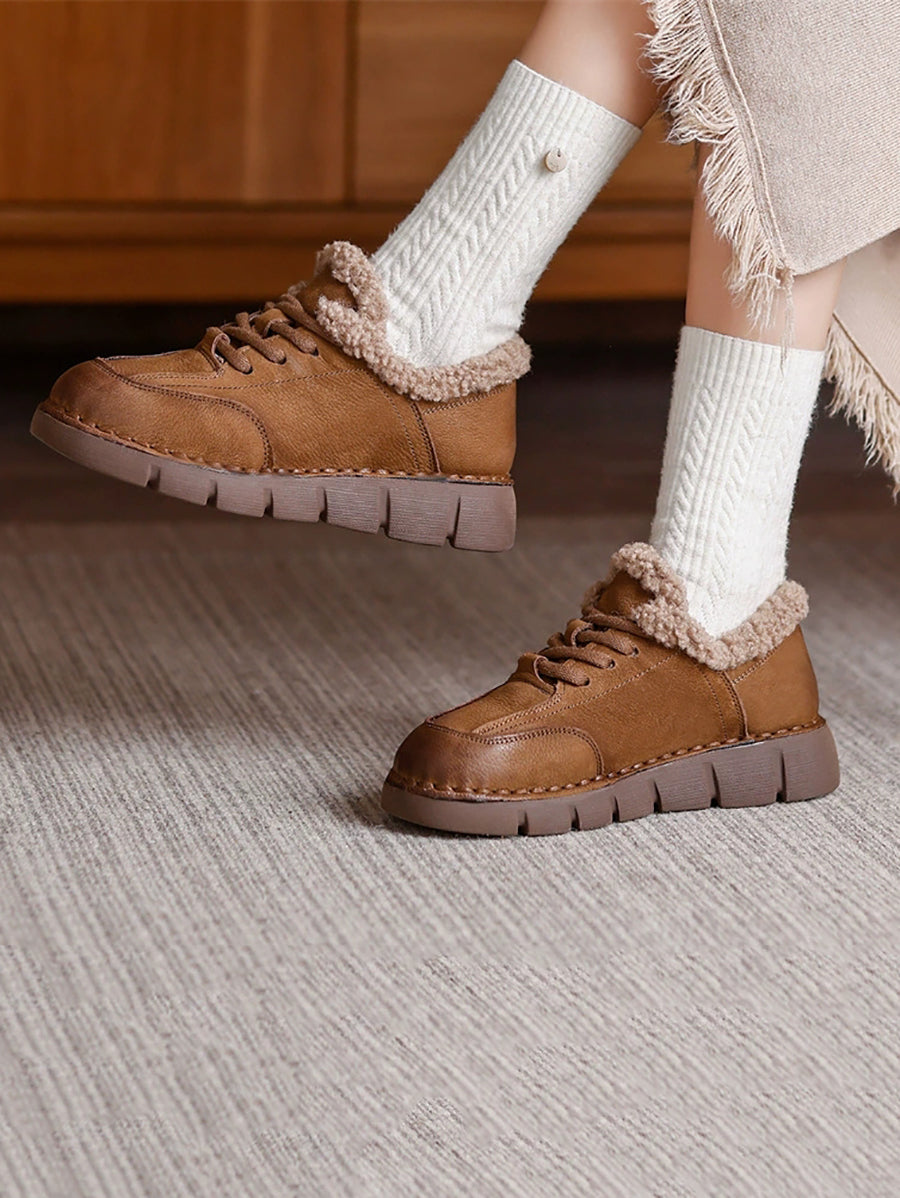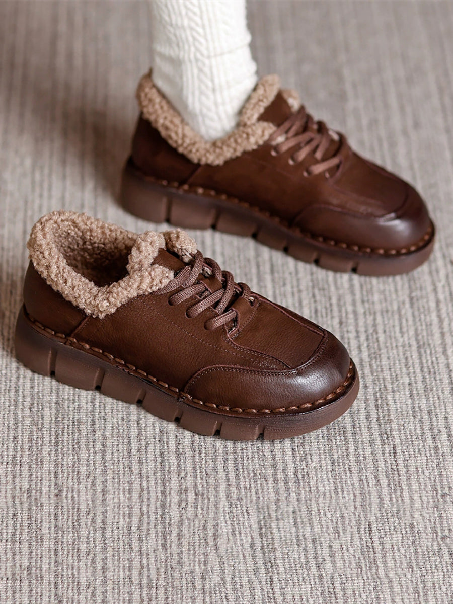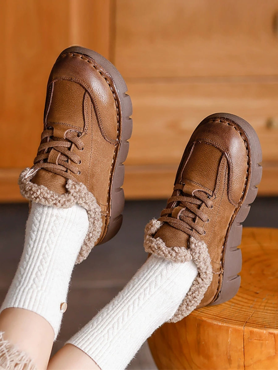 Zapatos de plataforma de piel auténtica con forro polar para mujer, de invierno