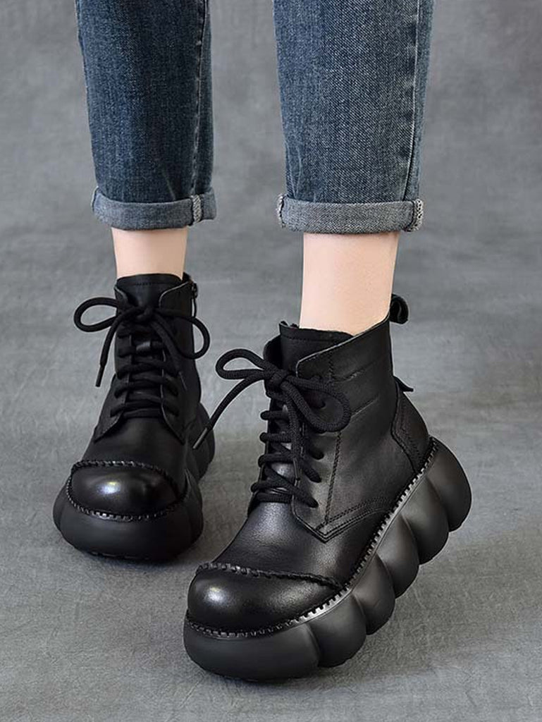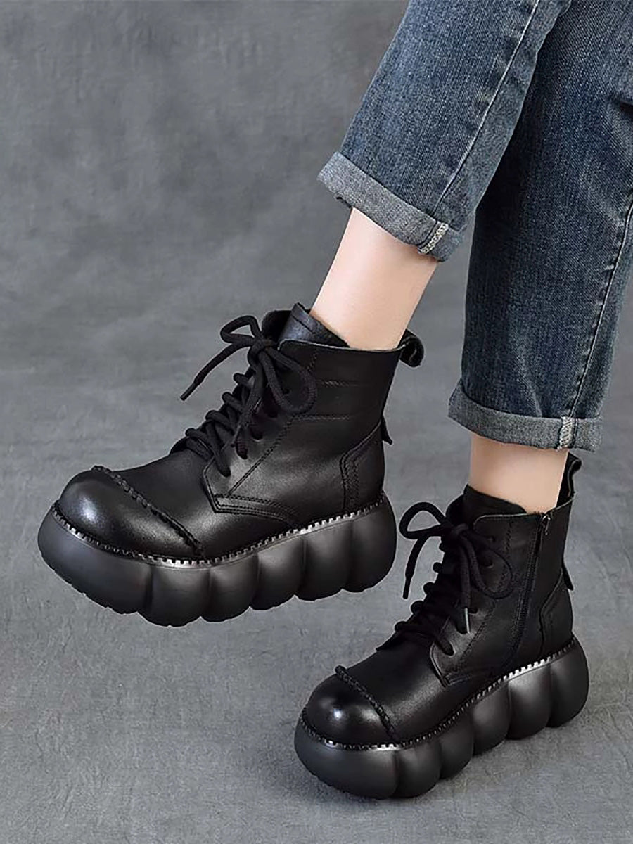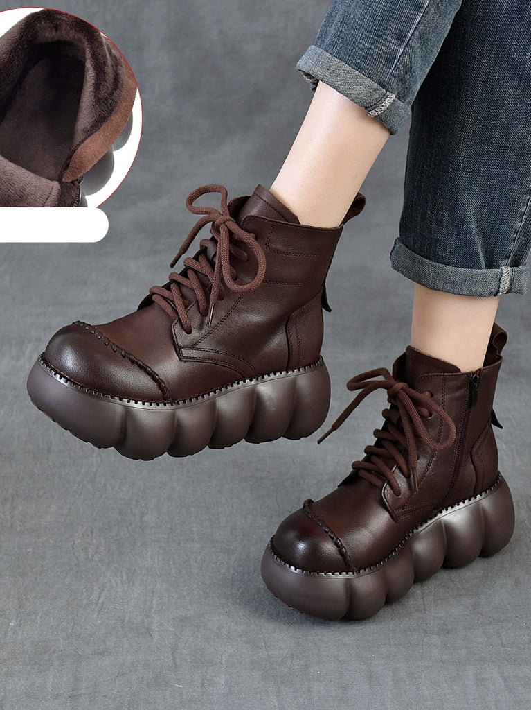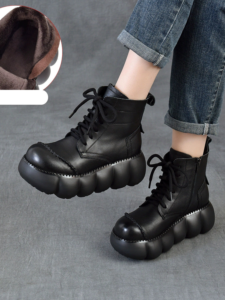 Botines de plataforma de piel auténtica para mujer, ideales para el invierno.