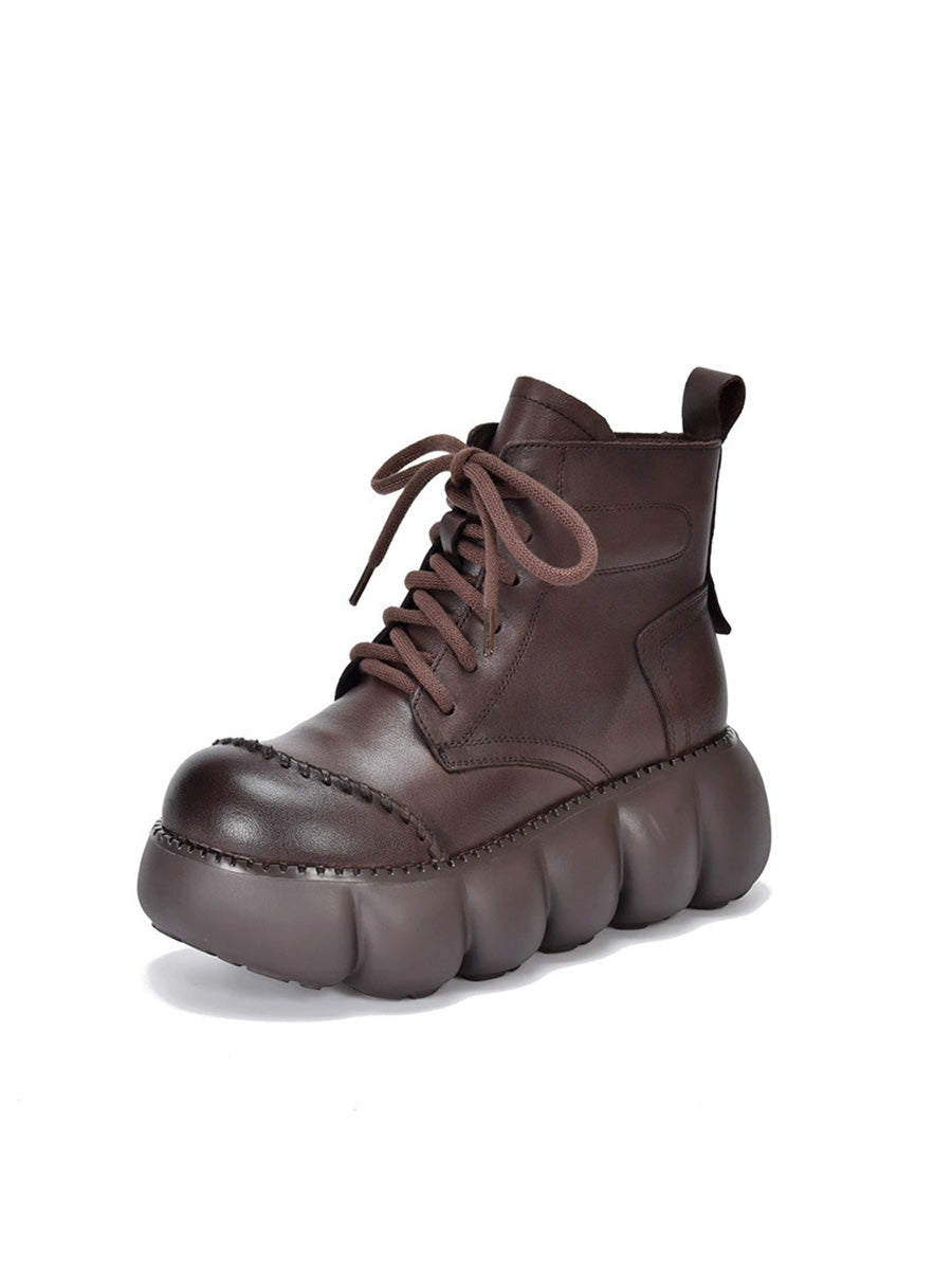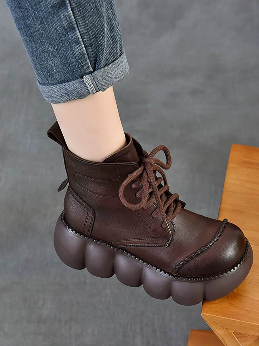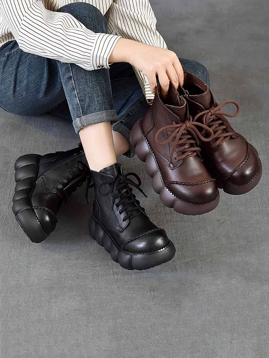 Botines de plataforma de piel auténtica para mujer, ideales para el invierno.