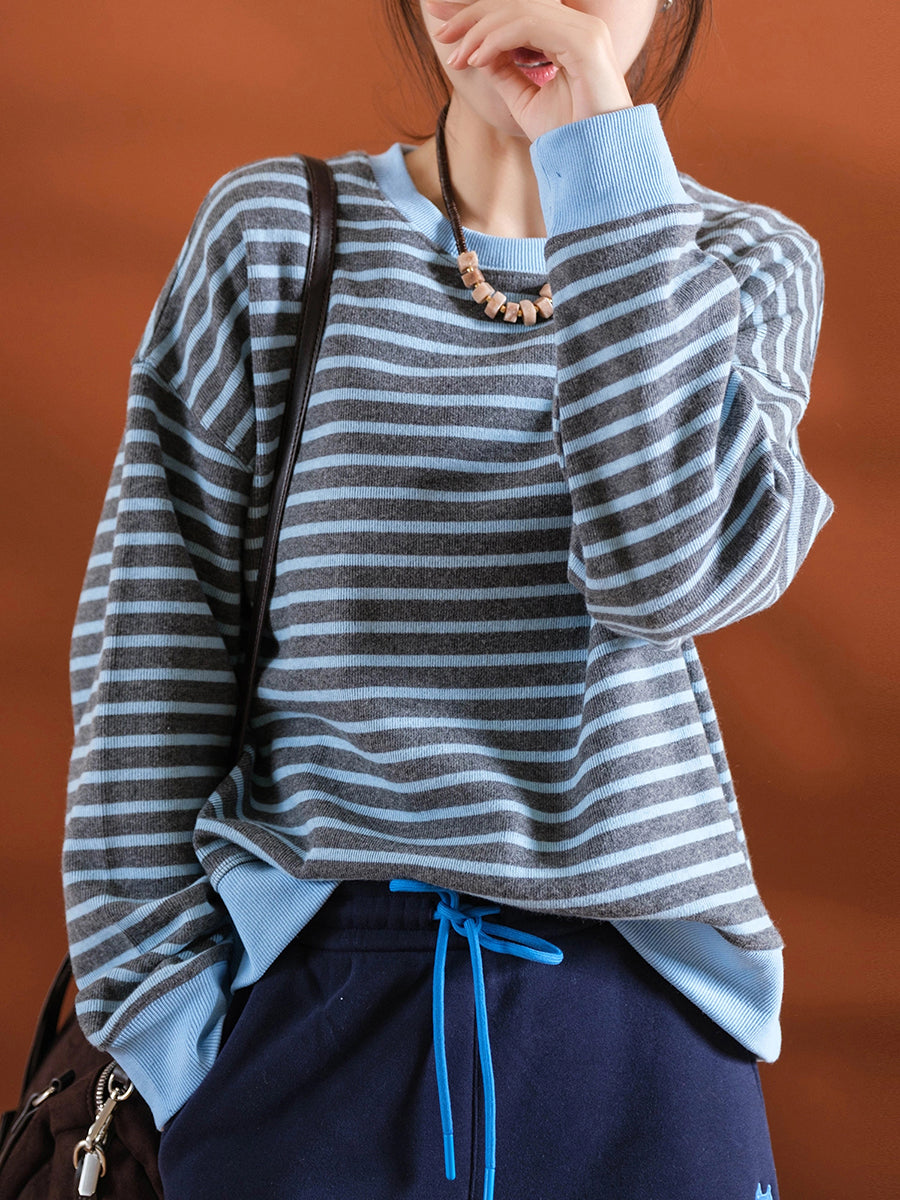 Blusa informal de rayas de invierno para mujer