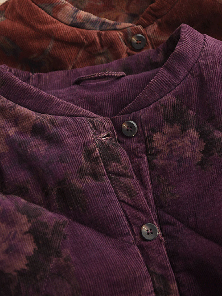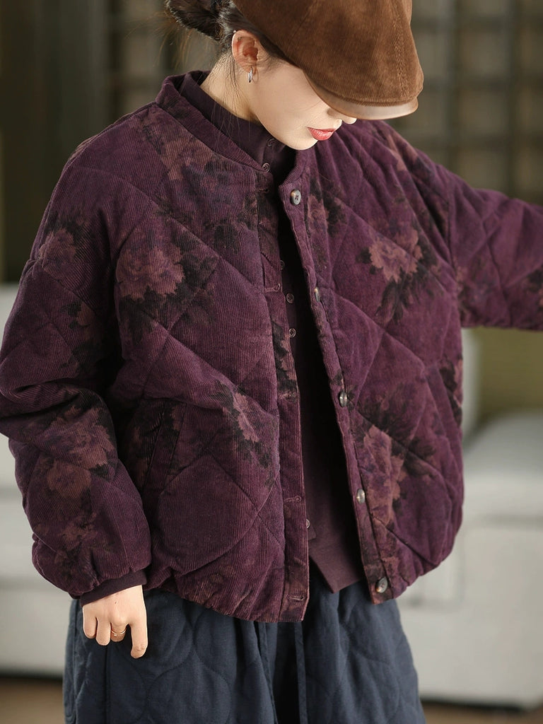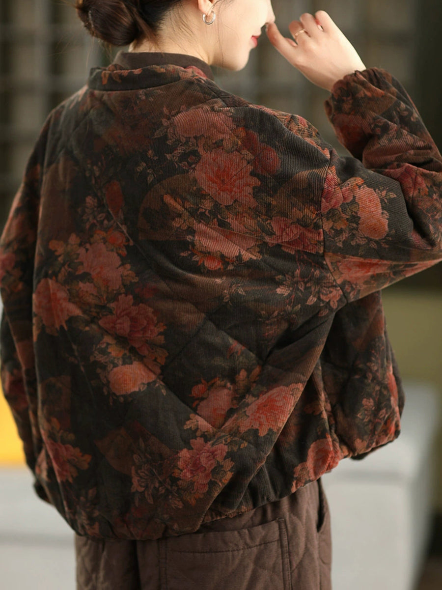 Chaqueta acolchada 100 % algodón con estampado floral vintage para mujer