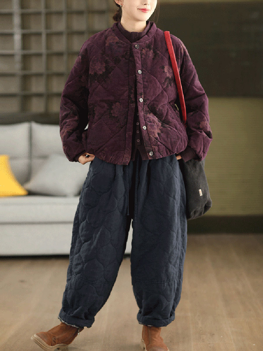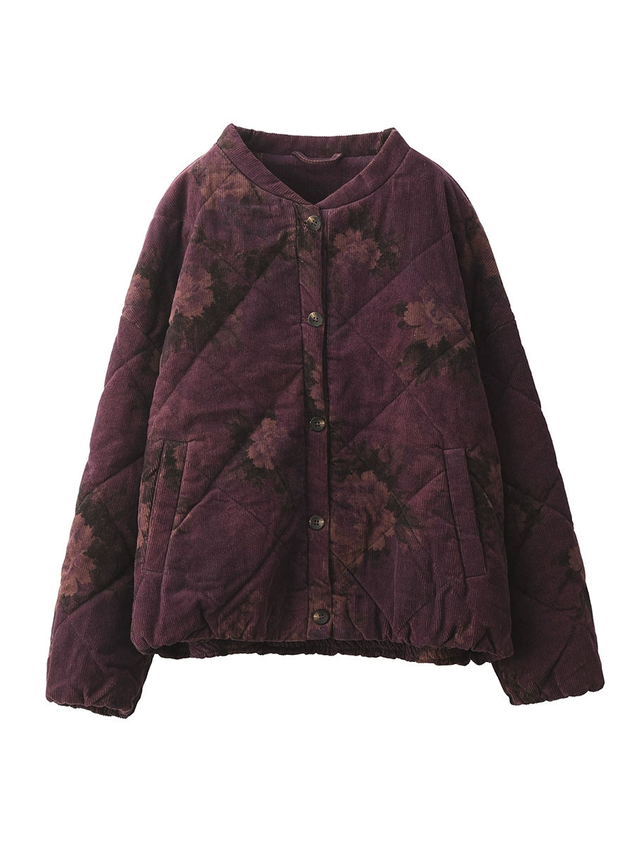 Confeccionado en 100 % algodón, este abrigo acolchado de inspiración vintage para mujer presenta un estampado floral y cuello alto. Diseñado con mangas largas de estilo retro, es ideal tanto para otoño como para invierno.