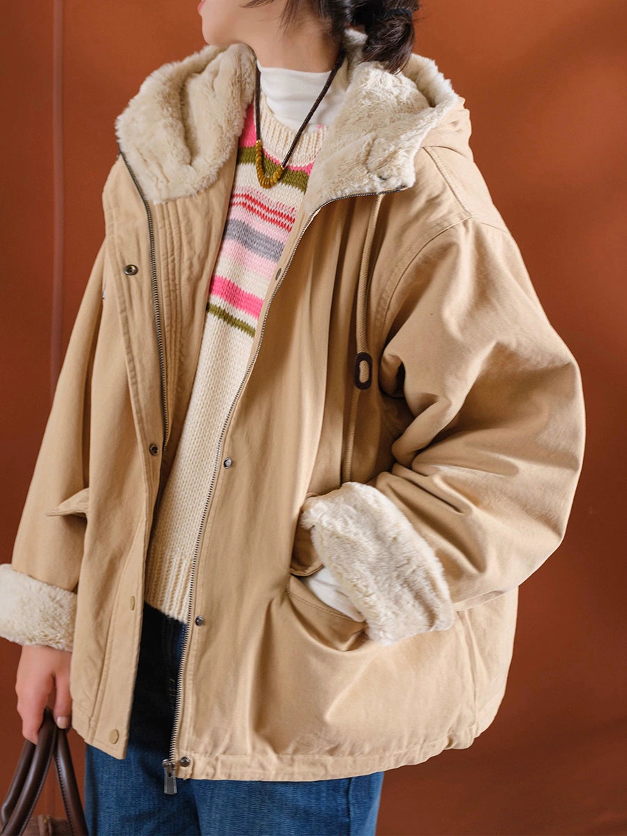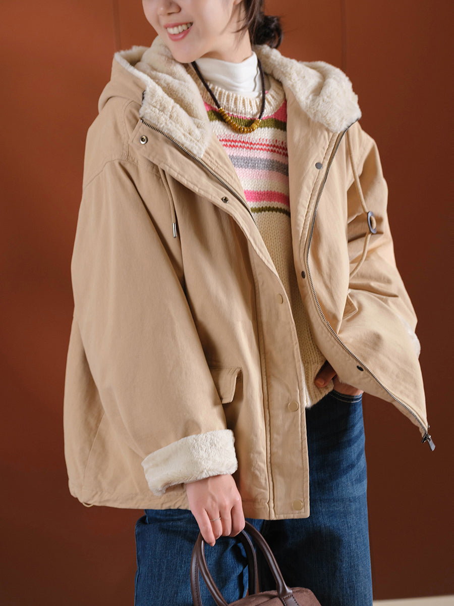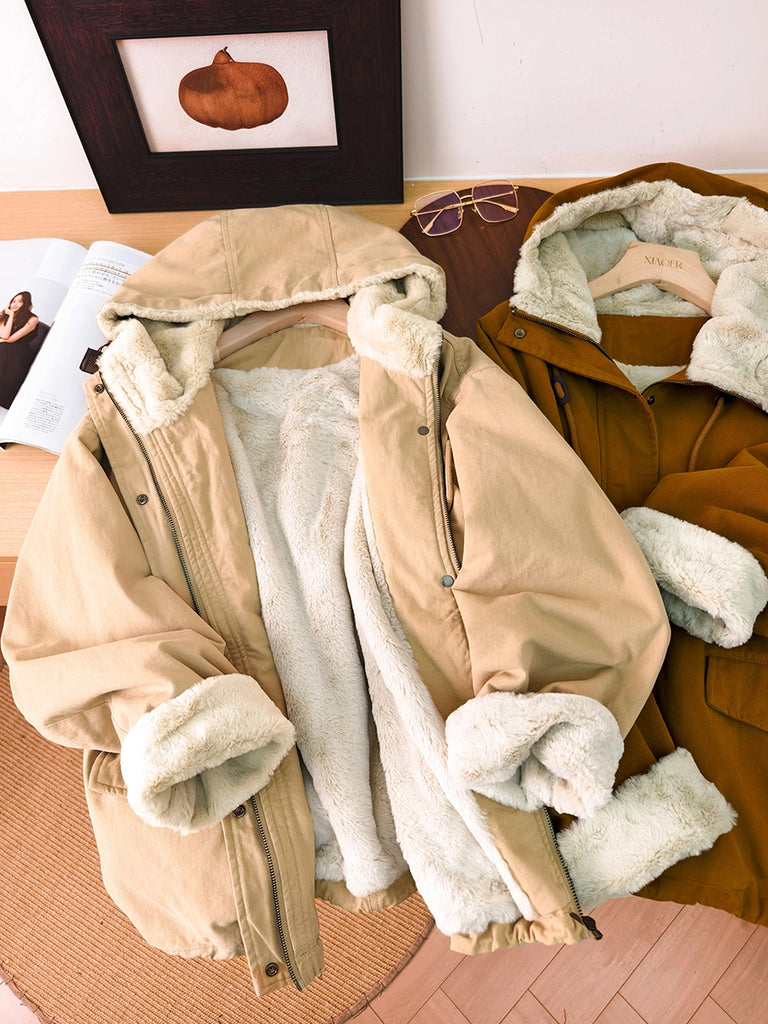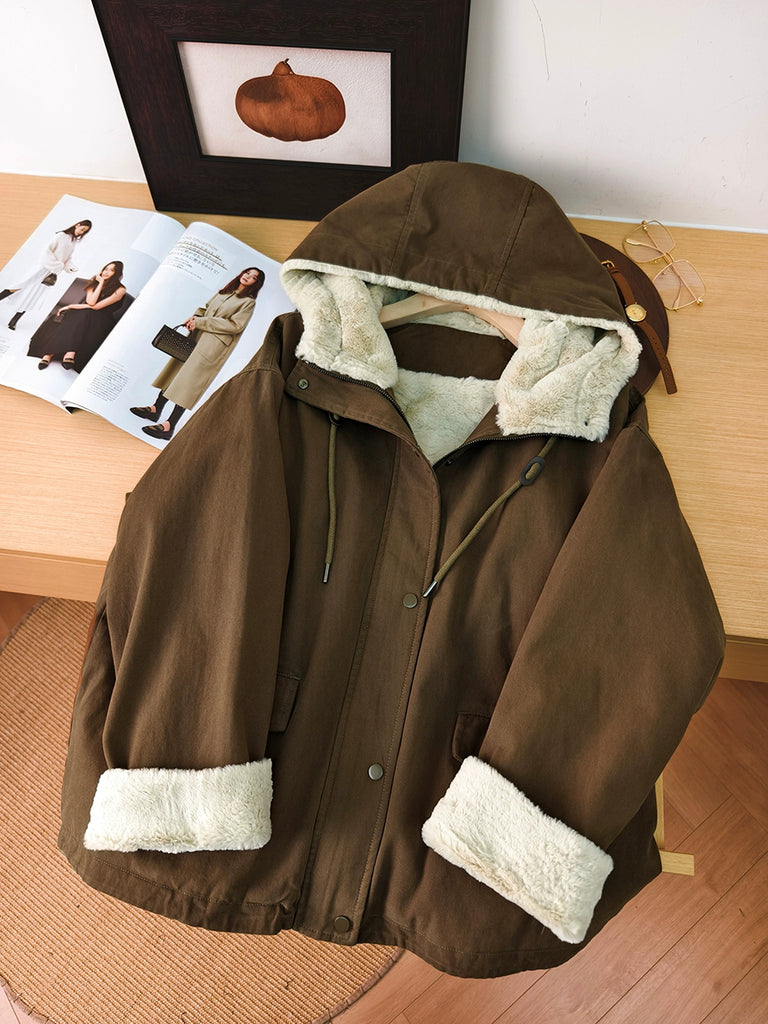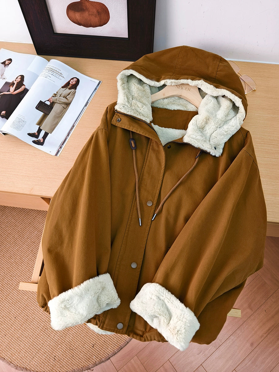 Abrigo con capucha de forro polar de color liso, estilo casual de invierno para mujer