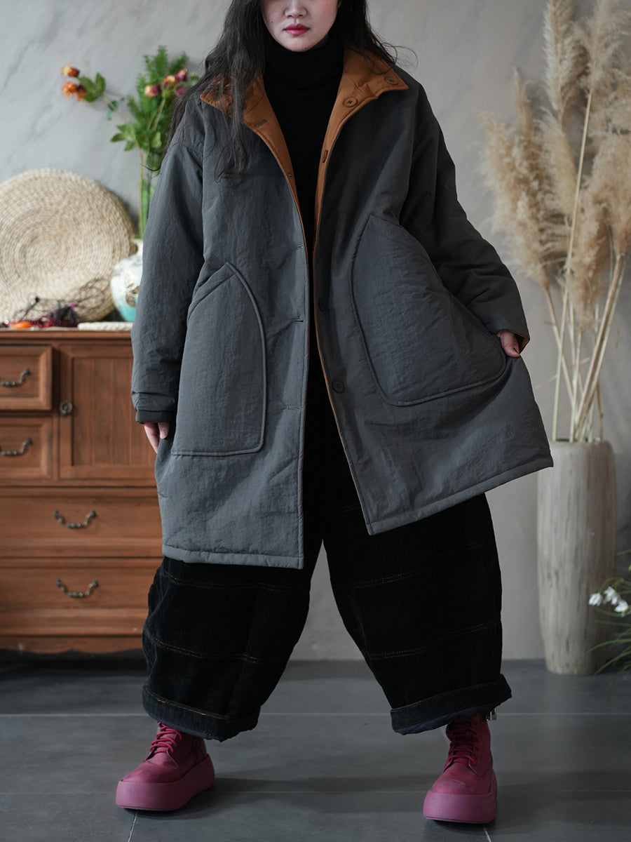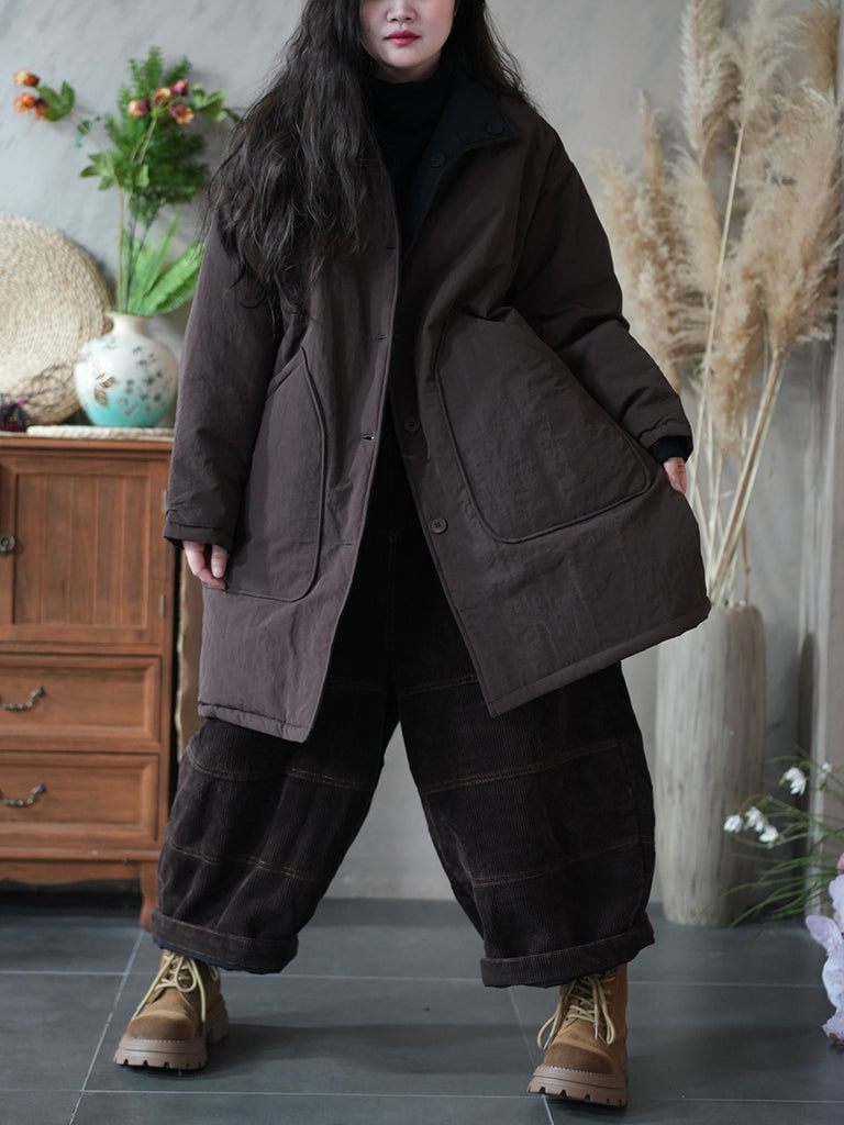 Abrigo acolchado con capucha de color puro de invierno para mujer