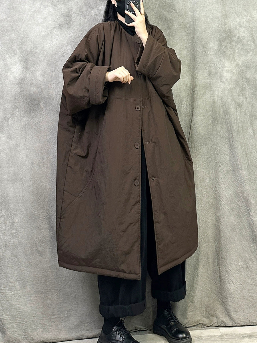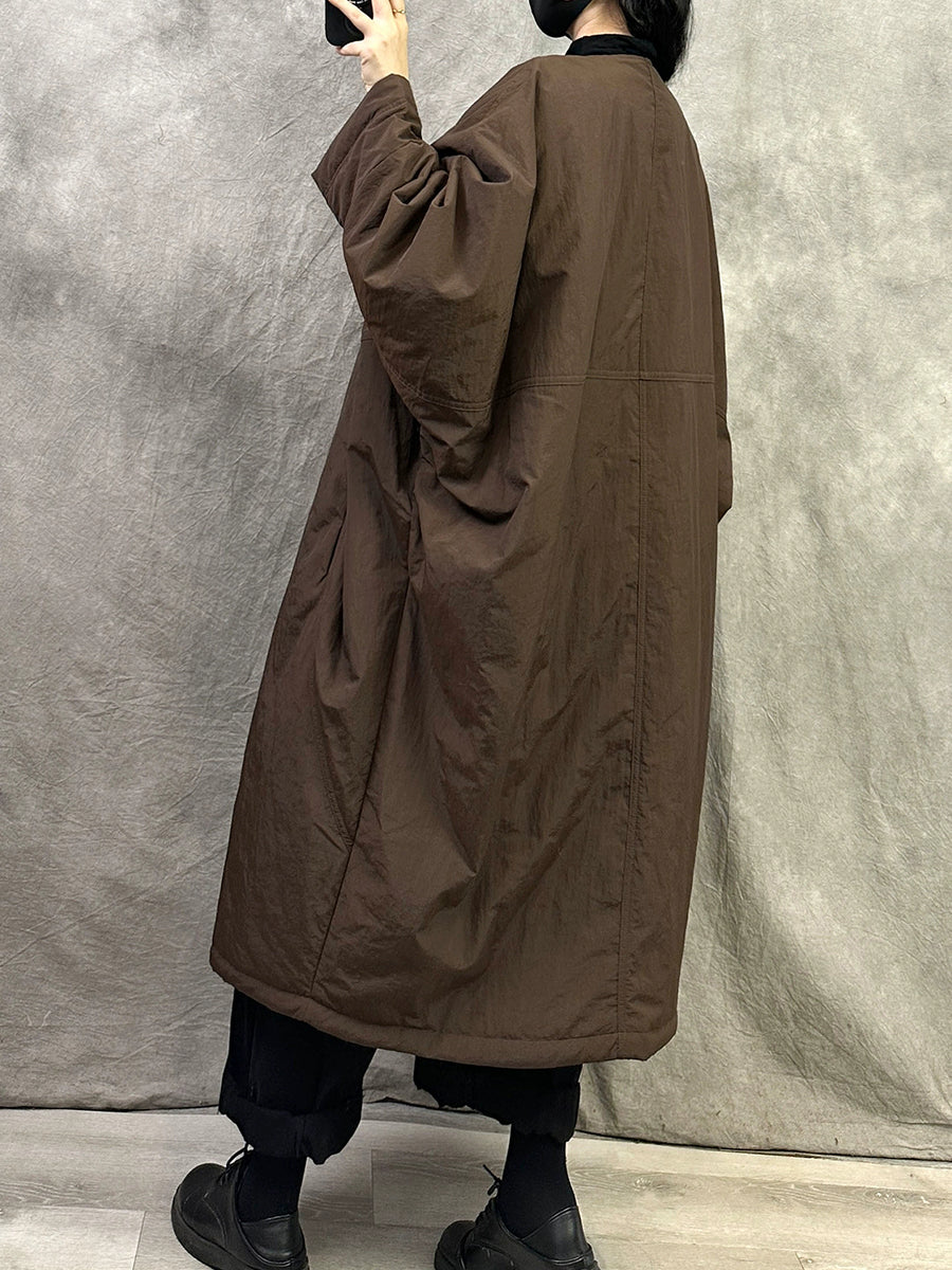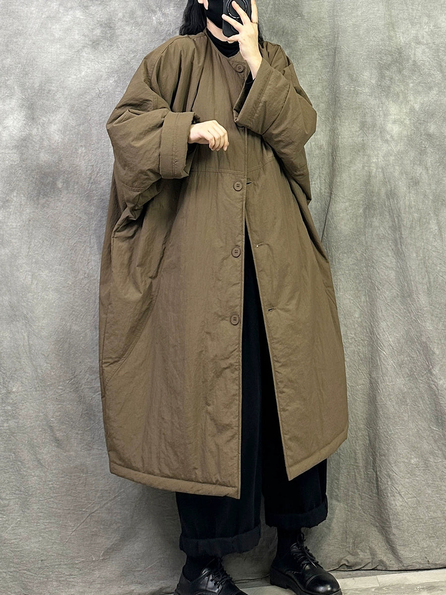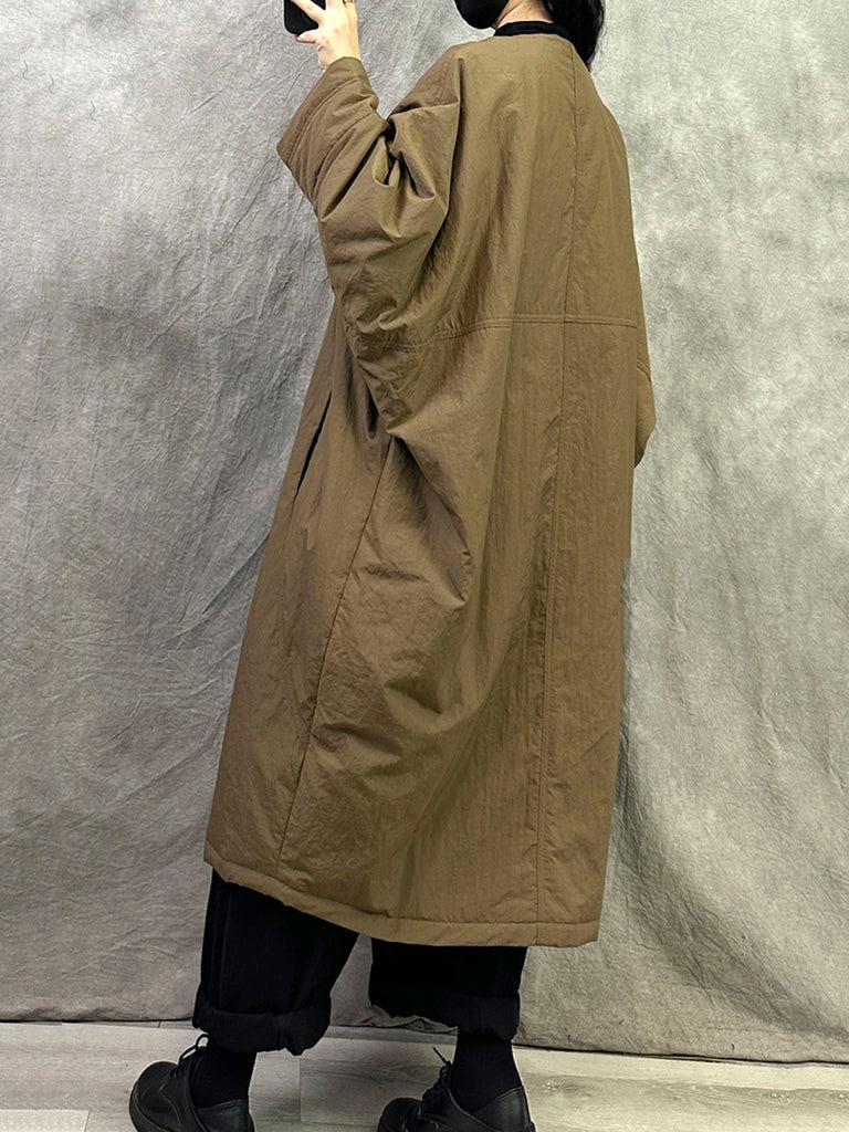 Abrigo acolchado de cuello redondo de color liso para mujer, ideal para el invierno.