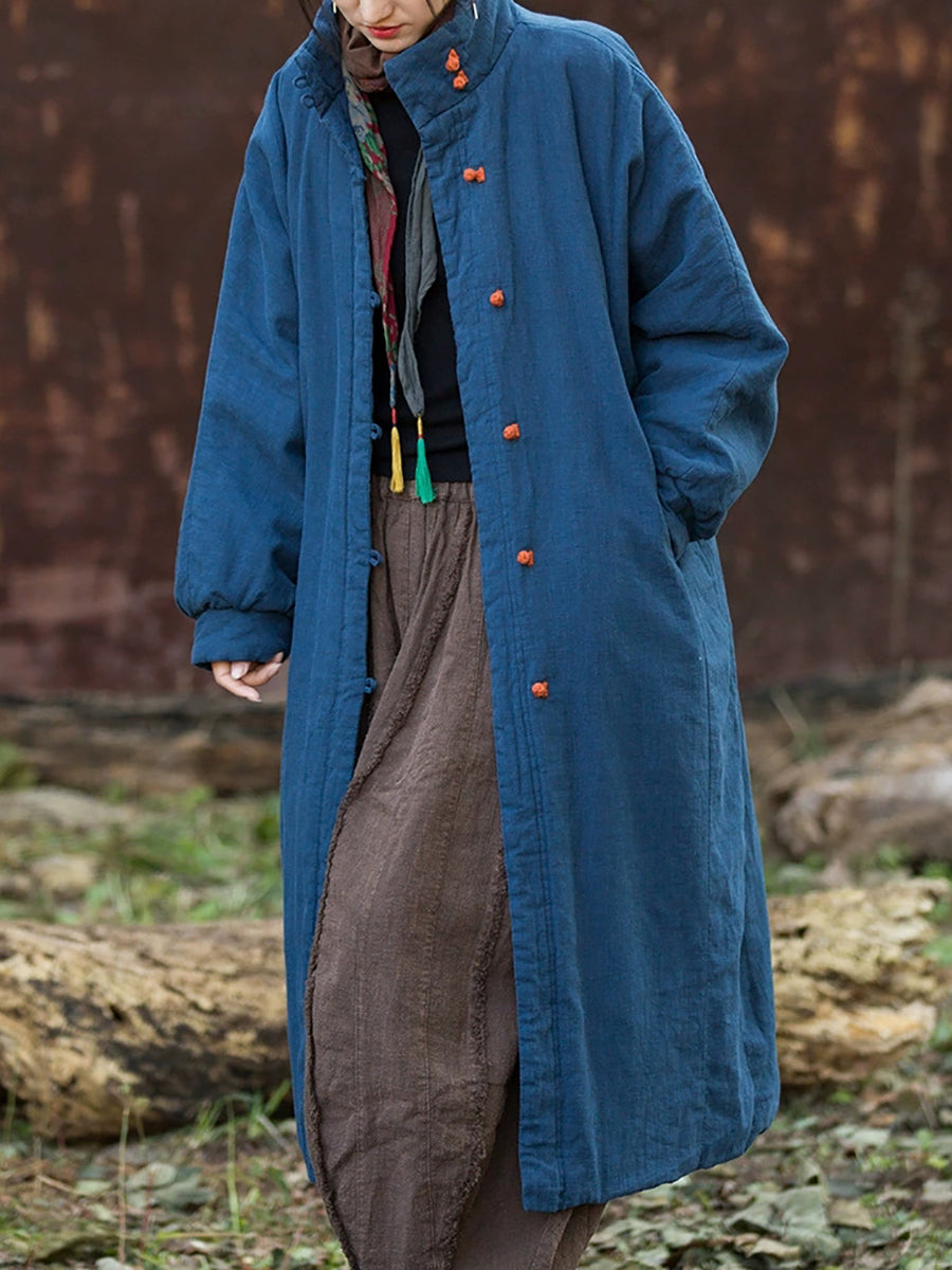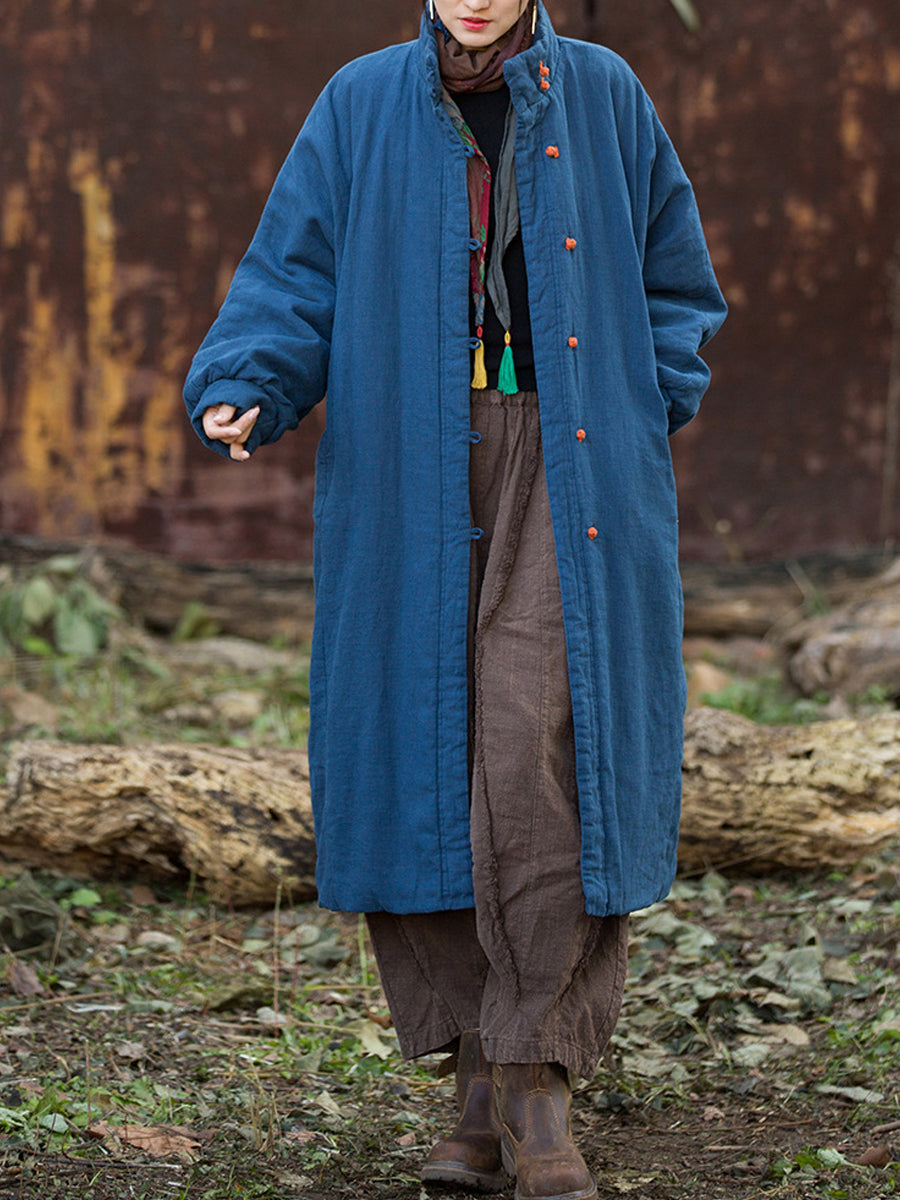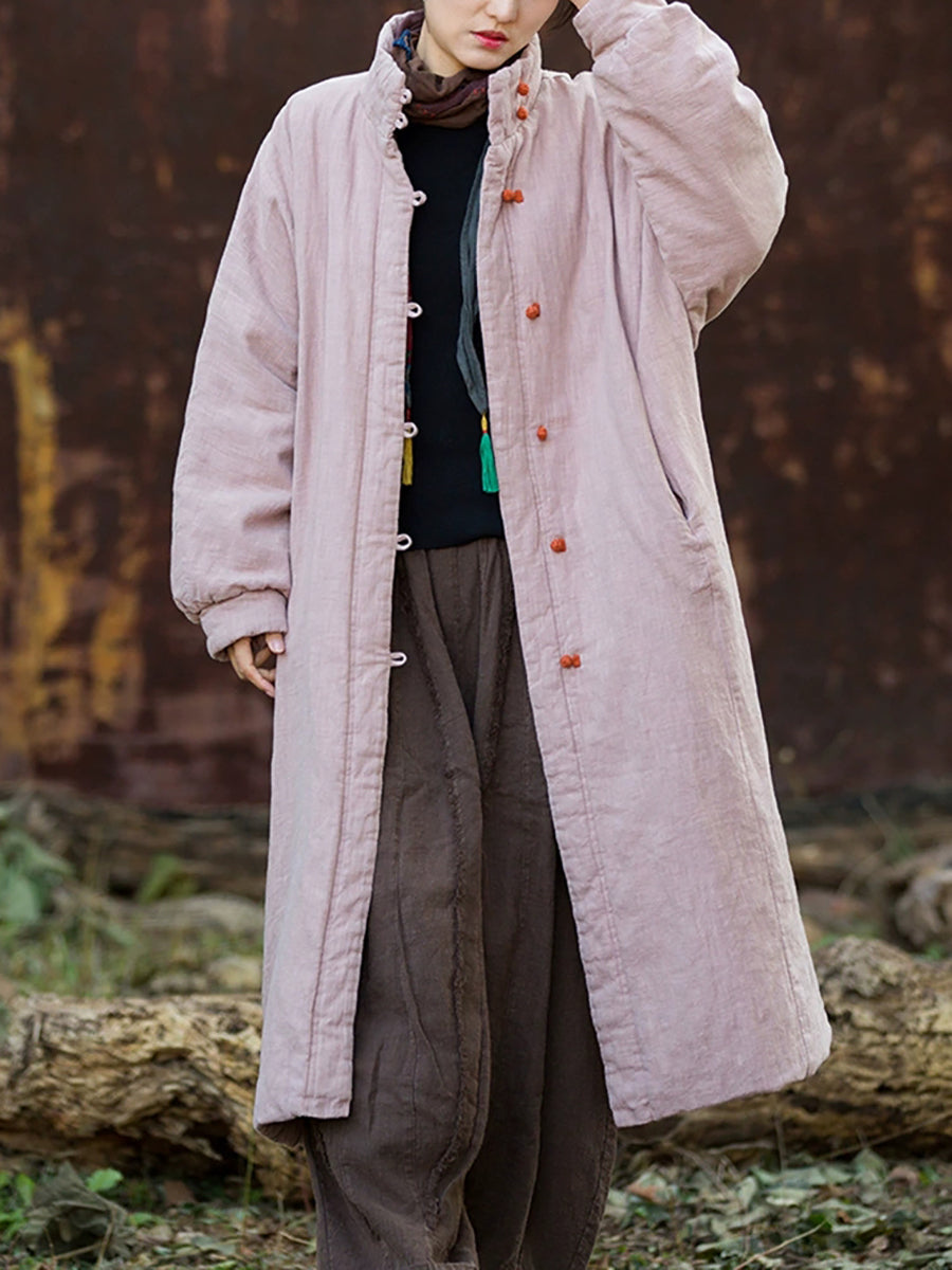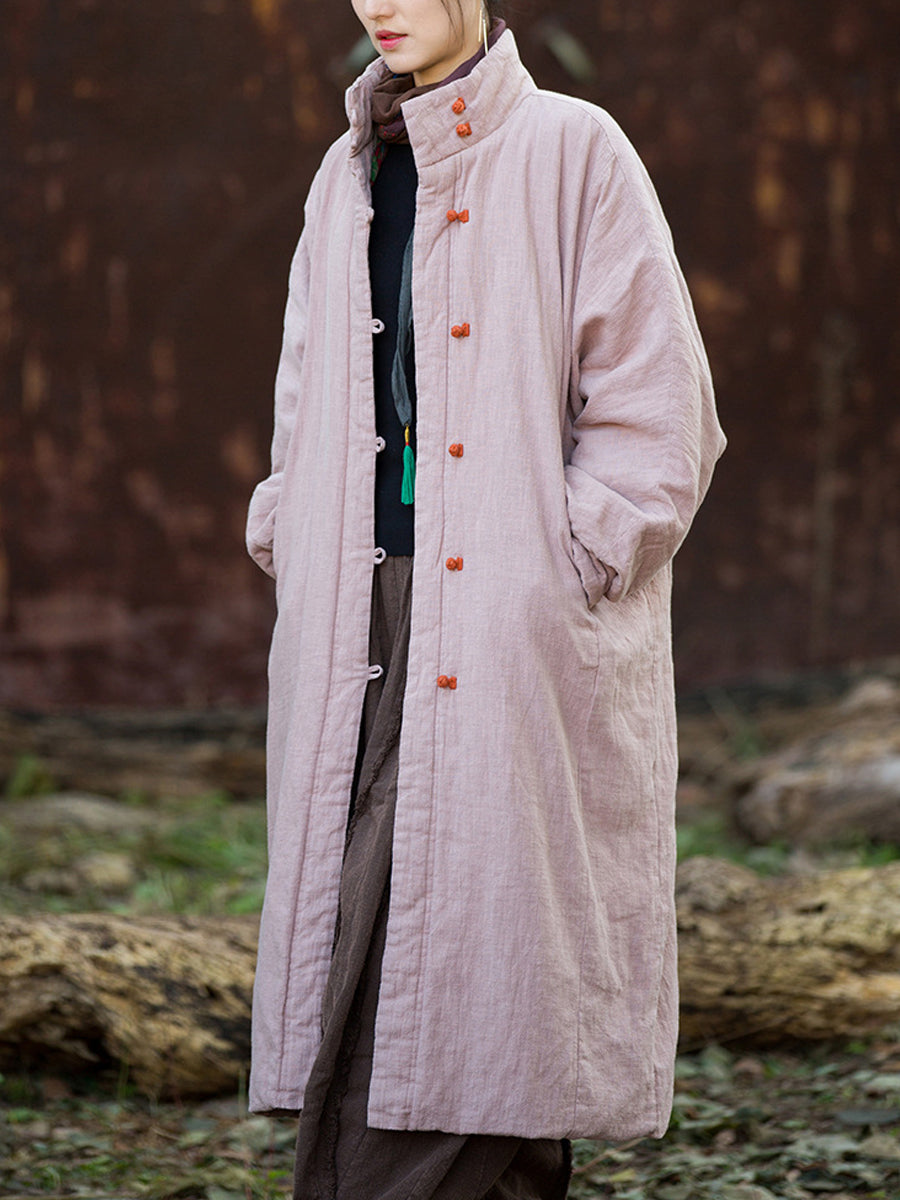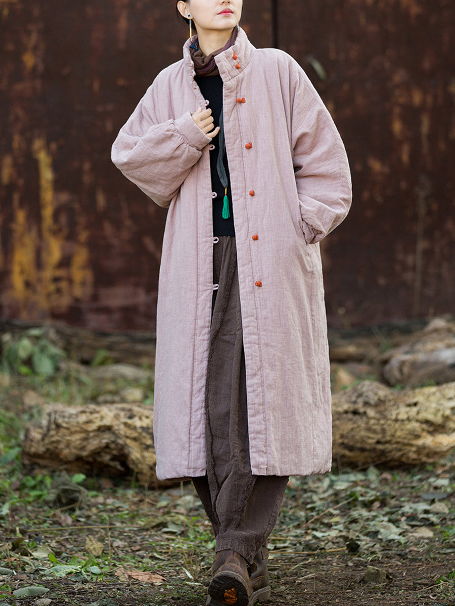 Abrigo acolchado de cuello alto de color puro de invierno para mujer
