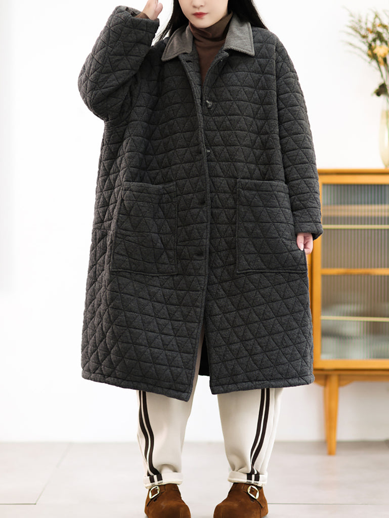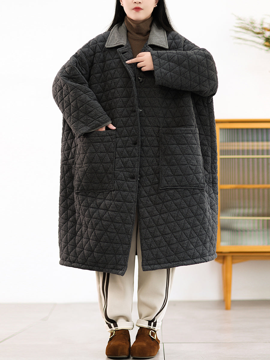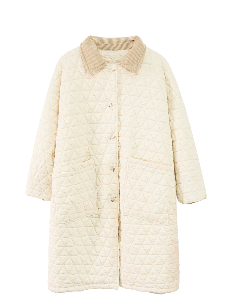 Confeccionado en algodón de primera calidad, este abrigo acolchado de largo extendido luce un clásico cuello vuelto y mangas raglán que brindan libertad de movimiento y una comodidad moderna. Su discreto color liso ofrece una versatilidad excepcional para combinar con otras prendas y crear diferentes estilos durante todo el año. Gracias a su diseño de inspiración vintage y sus mangas largas, esta prenda proporciona una calidez considerable durante los meses de otoño e invierno, manteniendo a la vez una apariencia elegante y sofisticada.
