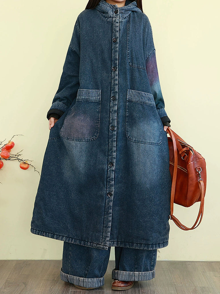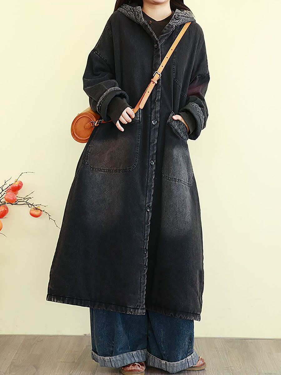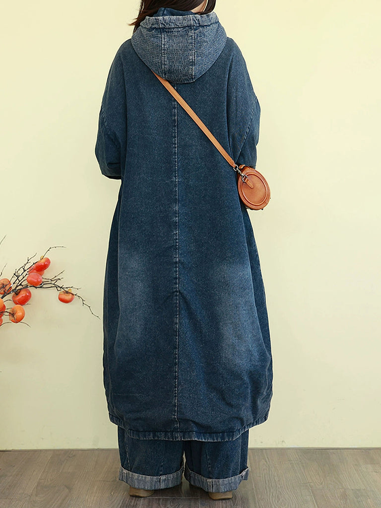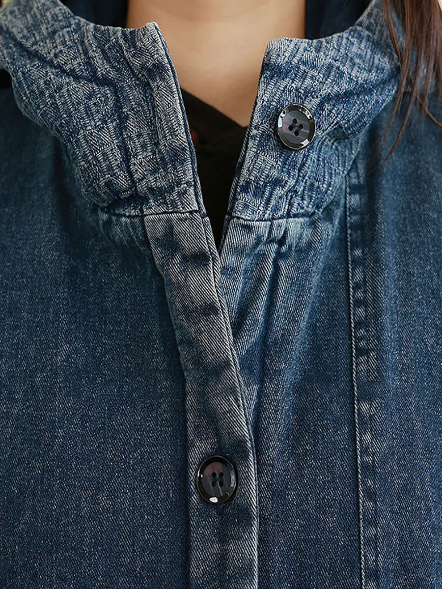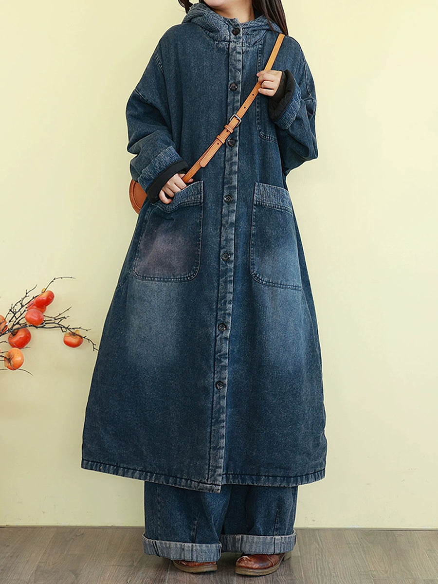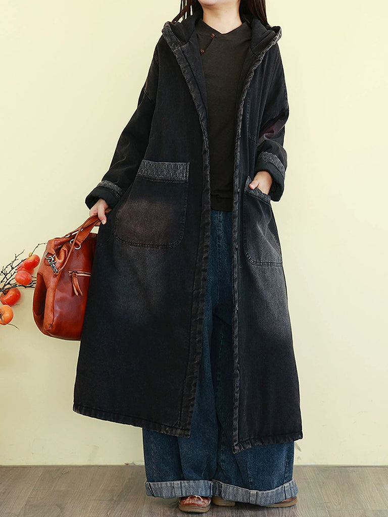 Abrigo acolchado con capucha para mujer, estilo vintage lavado vaquero, ideal para el invierno.
