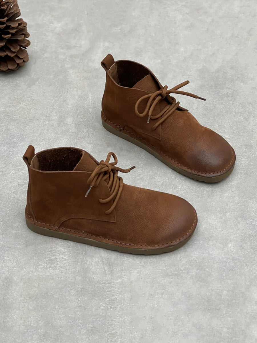 Botines de tobillo vintage de piel auténtica para mujer