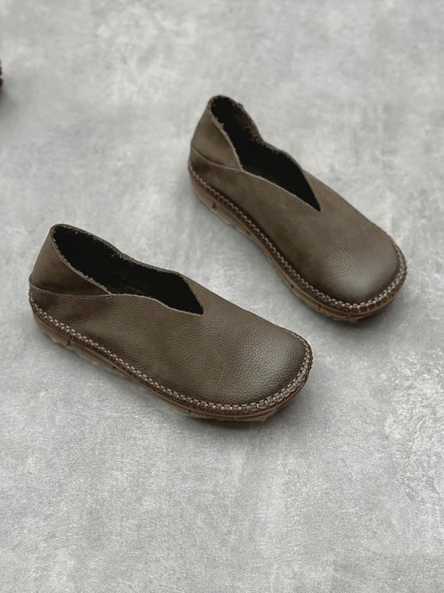 Zapatos planos suaves de cuero sólido vintage de verano para mujer