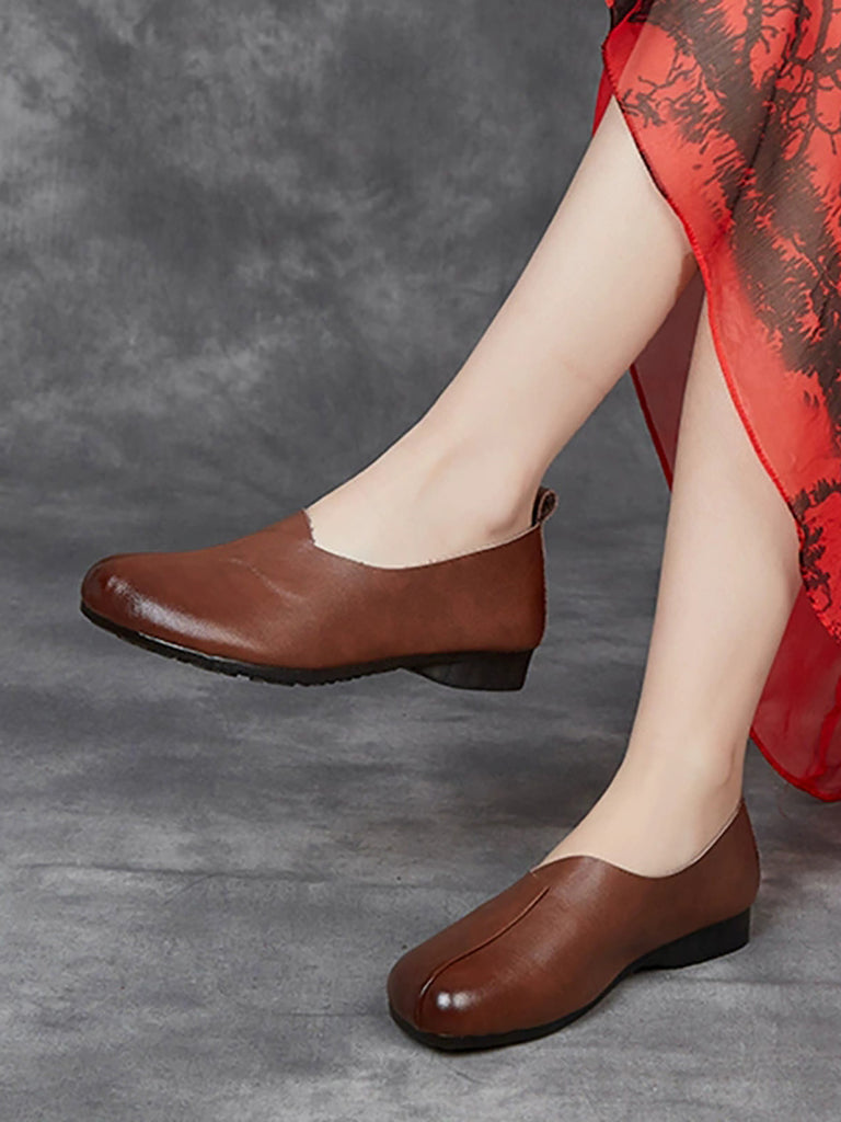 Zapatos casuales de tacón bajo de piel auténtica suave para mujer