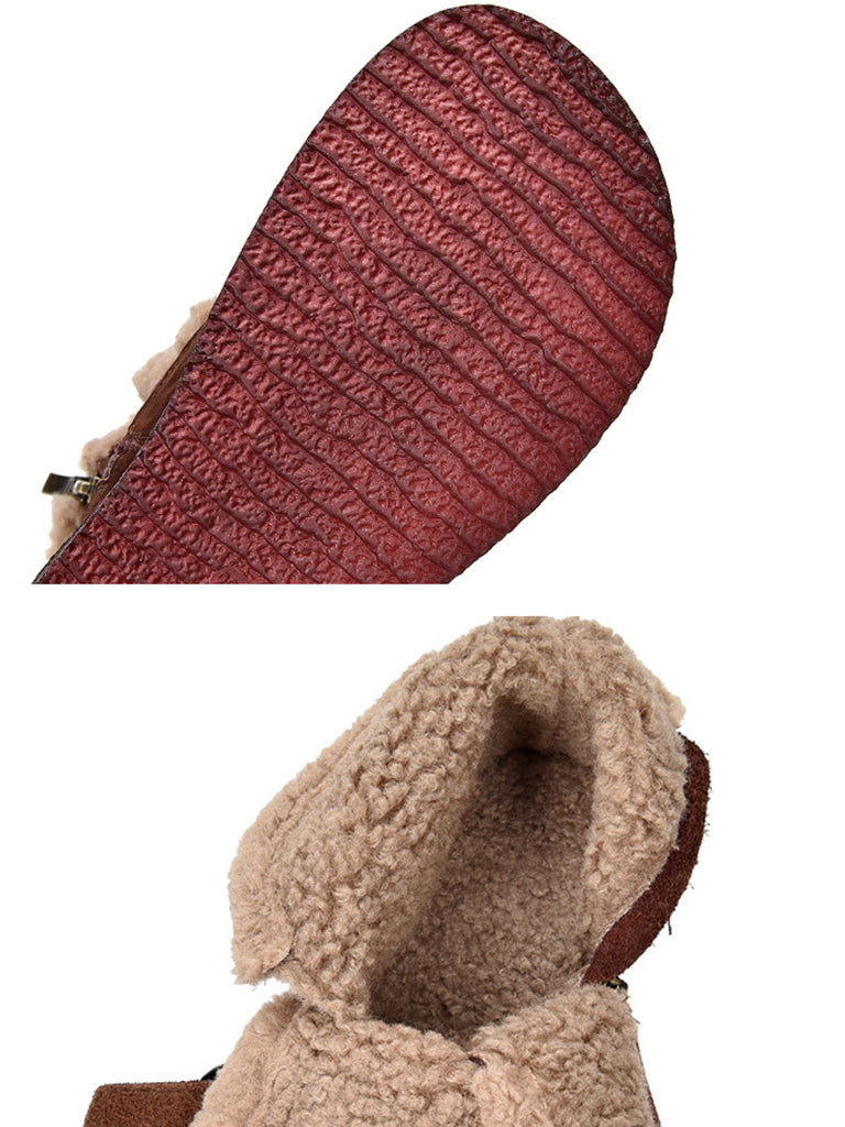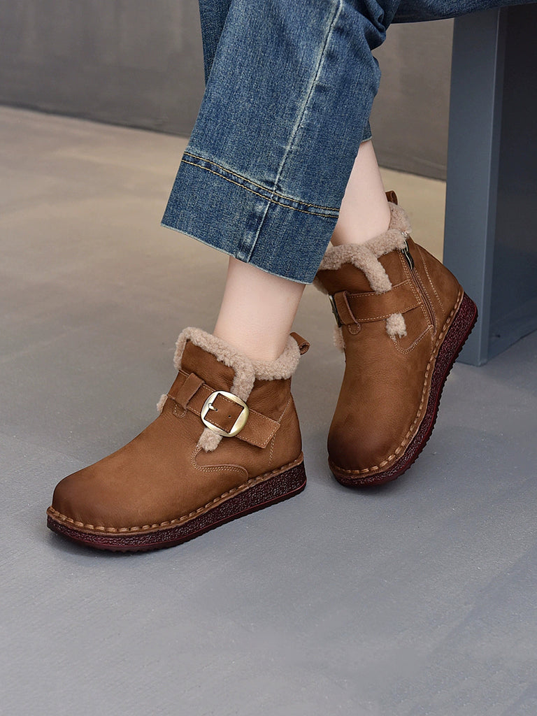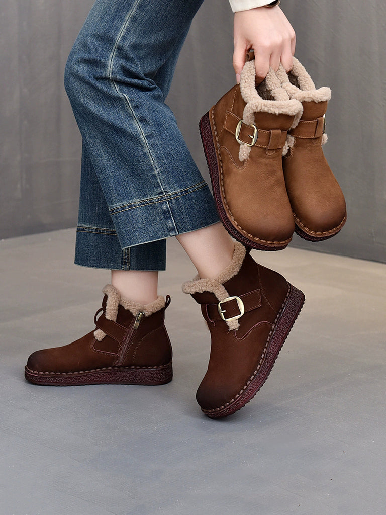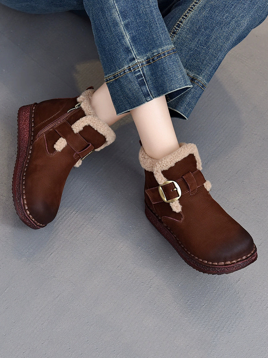 Botines de tobillo vintage de piel auténtica con forro polar para mujer
